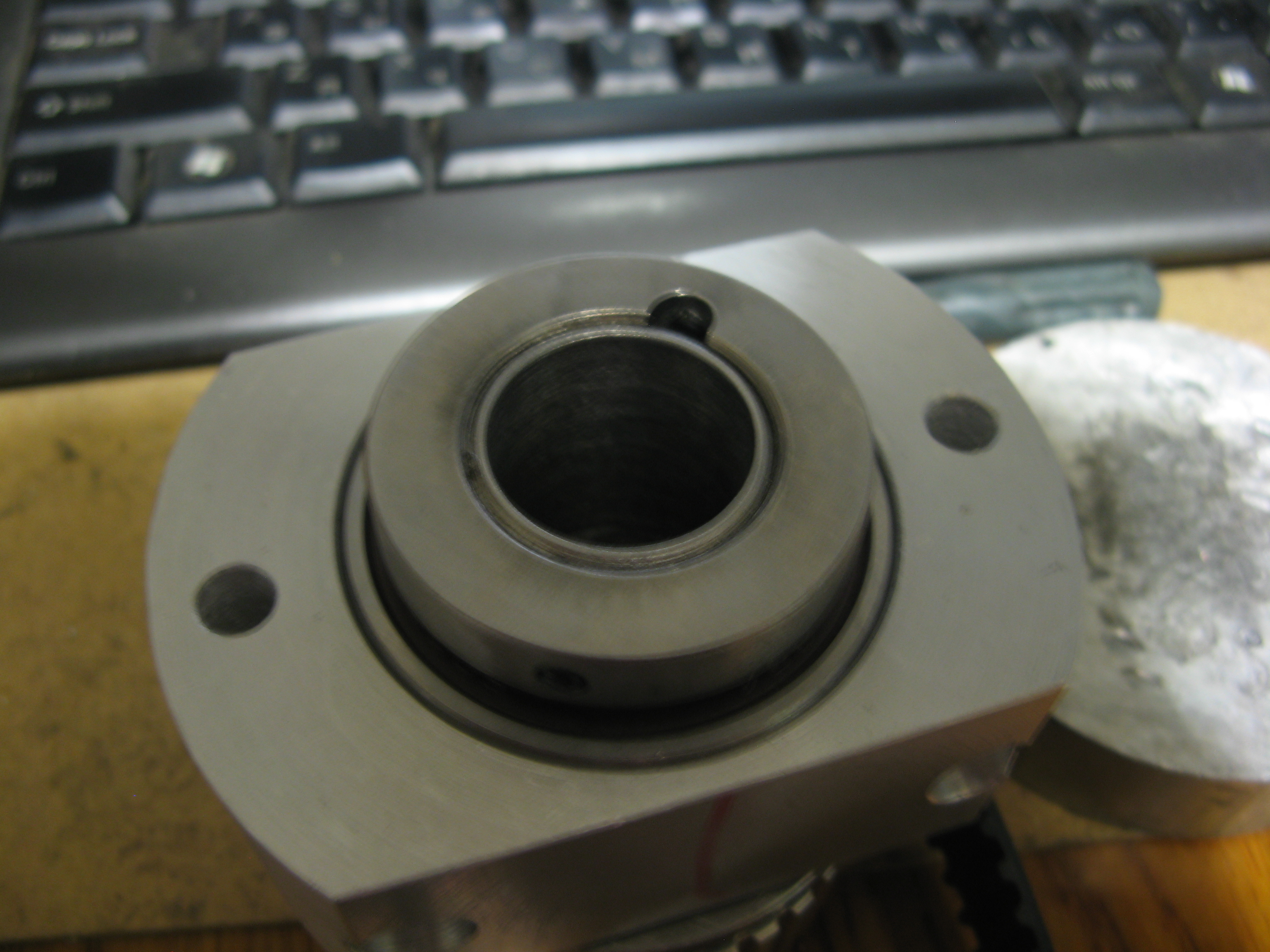 шкив одевается на гайку швп (желтый цвет) и подтягивается болтами к оси (малиновый цвет), которая вращается в корпусе на 2х подшипниках. второй шкив который на мотор ставится не показан, но думаю это итак понятно.кроме того показываю фотки своего недавнего заказа - под 20ю швп. серва типоразмера нема23 просто для примерки