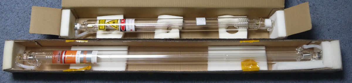 ____________________________________________________________________________________________________________________________________ Лазерные трубы 60 и 40 ватт. сороковка 7000 рублей, 60-ка 11,5 тыщ. ПРи отправке упаковываю во вторую коробку с прокладкой из поролона+ заказываю обрешётку, выходит на 300 рублей дороже доставка. Блоки питания 60 ватт - 11 тысяч рублей, 40 ватт 5000 рублей.