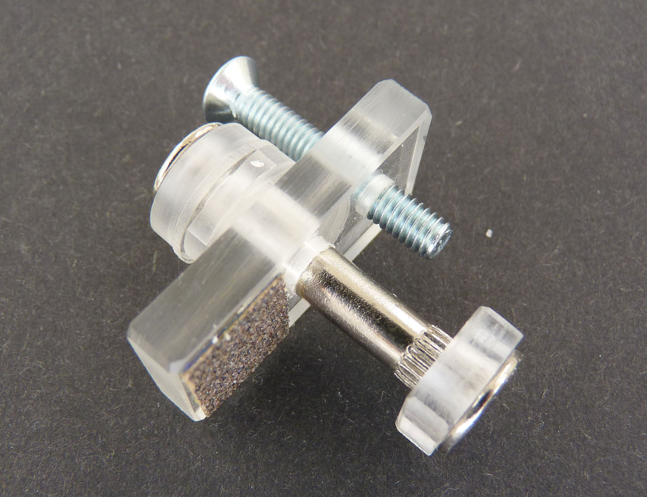 Прижим составной, состоит из 5 частей. Собирается без клея.