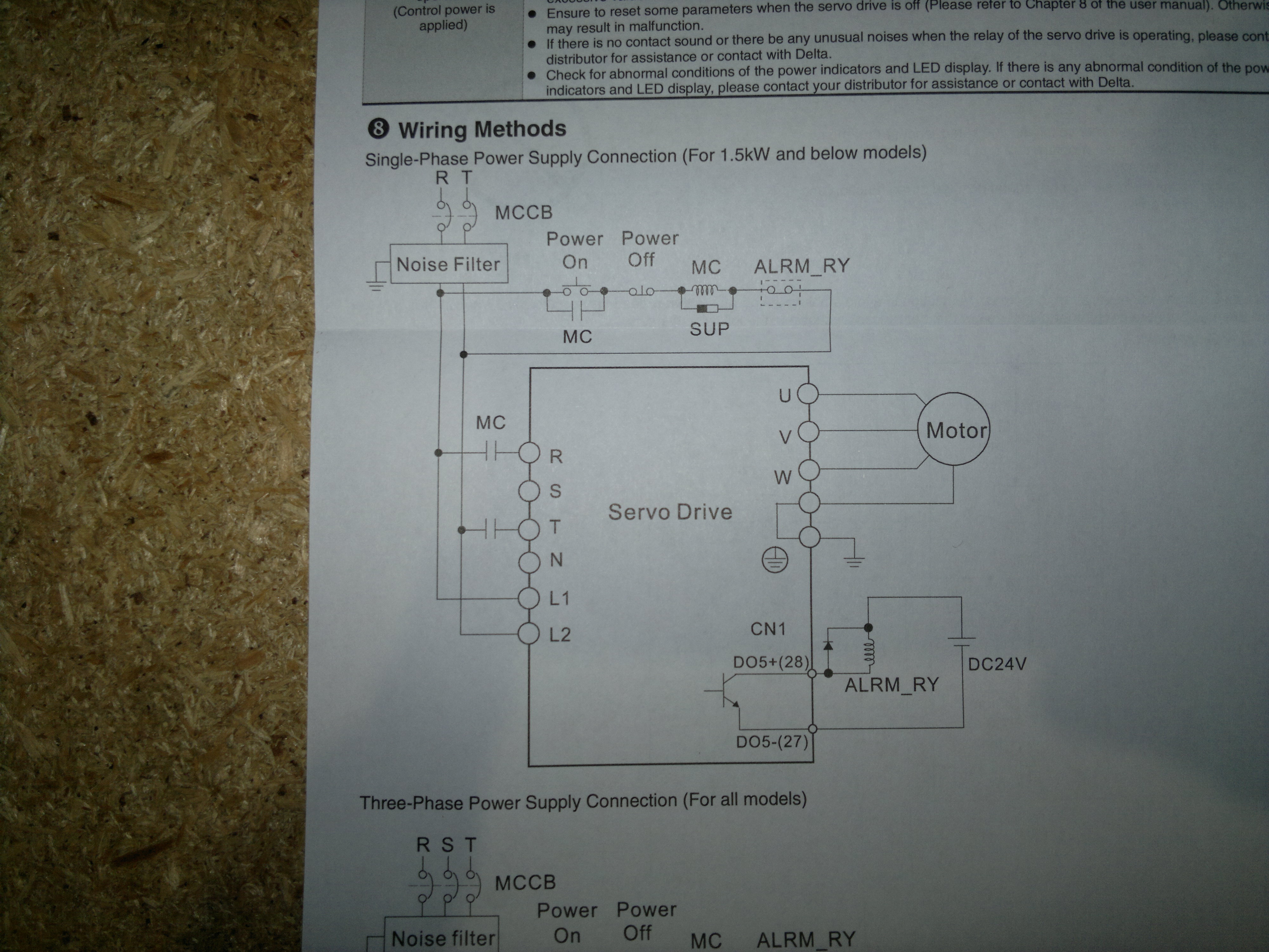 Контакты R и T - питание силовой части сервоусилителя - запитываются через контактор MC