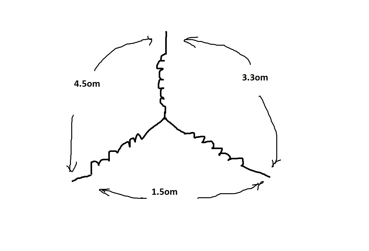 Выкупил не рабочий шпиндель (запускается, через 3 секунды останавливается, время общей эксплуатации часов 10), промерял сопротивления обмоток. Интересная ситуация, 4.5ом, 3.3ом и 1.5ом, на корпус КЗ нет, если считать обмотки соединены звездой, в теорий как такое сопротивления могут возникнуть?