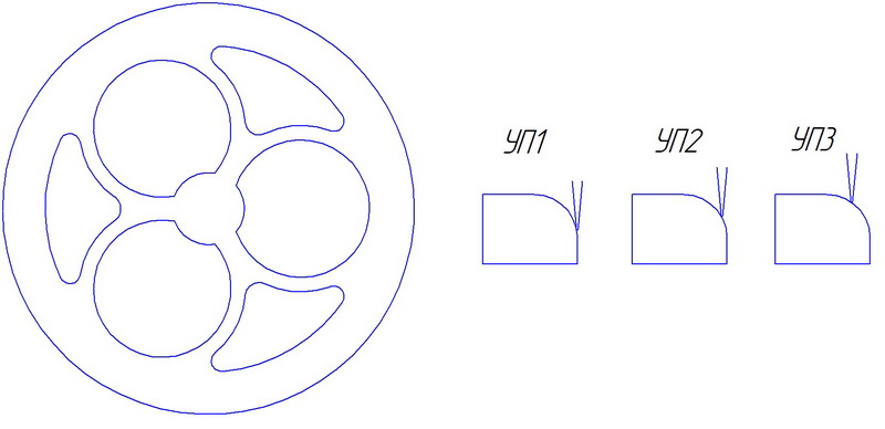 Конечно время обработки будет больше, но фрезу можно гонять на максимальной скорости, поскольку за 1 проход она будет снимать очень небольшой слой материала, к тому же в моем случае время обработки одной детали данным способом составляет чуть более 2 минут. Массового производства нет. Поэтому это не критично. Куда важнее универсальность способа. В моем случае дело часто приходится иметь с очень мелкими обьектами, с расстояниями между соседними векторами контура всего несколько мм.Карпуха писал(а):rean32, Вы хоть представляете, что время обработки между тем, как Вы хотите (3D), и просто обогнать профильной фрезой по вектору, будет различаться в разы, если не в десятки раз! Или Вам это не важно? Я Вам советую подобрать профильную фрезу с нужным радиусом скругления, указанную мною выше, и поэксперементировать, чтобы подобрать нужную величину смещения от вектора обгоняемого края.