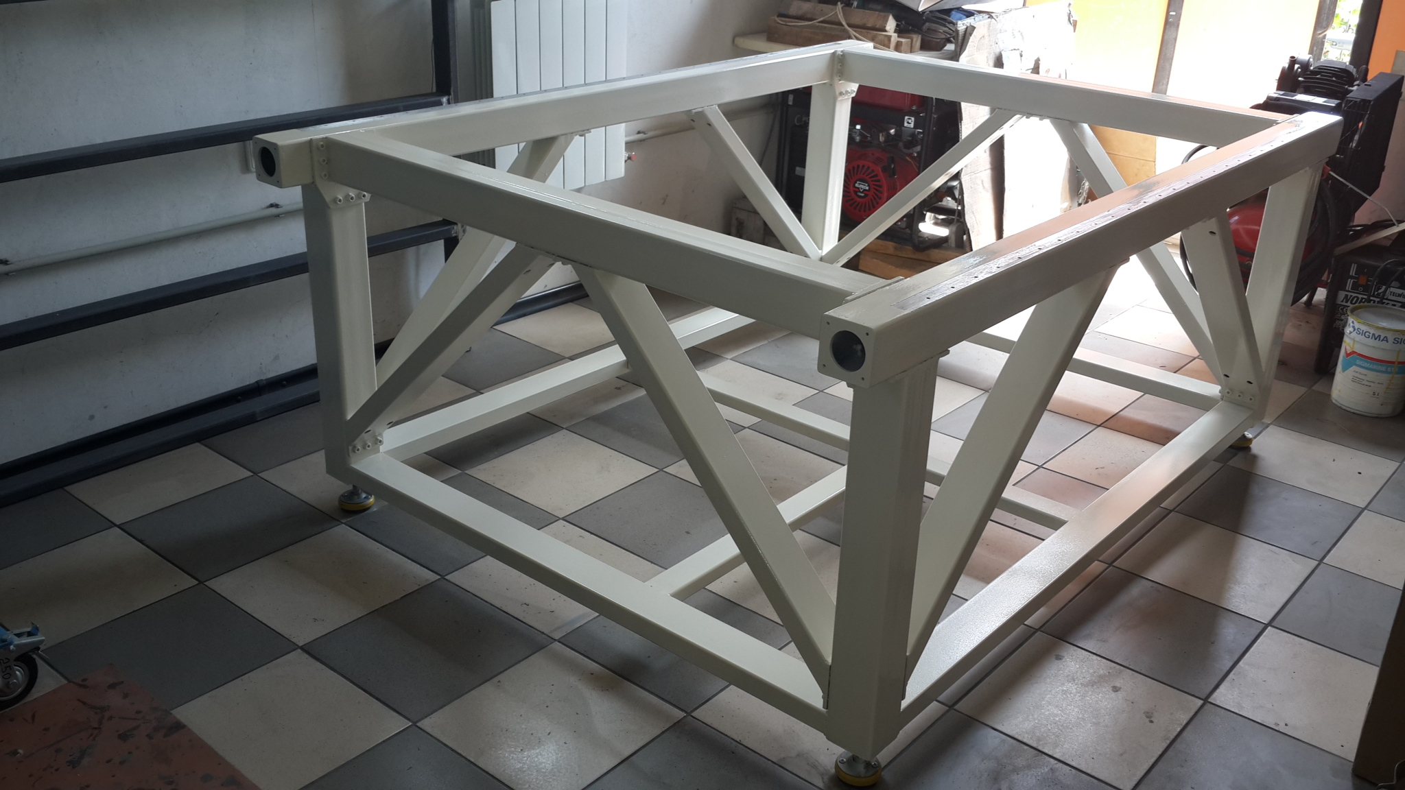 Так как в сварке я не большой специалист то собирать решил на болтах М8. А для уменьшения вибрации и надежного фиксиирования использую жидкие гвозди усиленной фиксации. Хотел сначала собрать, потом разобрать покрасить и заново собрать. Но понял что без штифтования повторная сборка будет вкрив и вкось. И решил сразу фиксировать намертво. А там или на месте красить или соседей звать для выноса тела:)