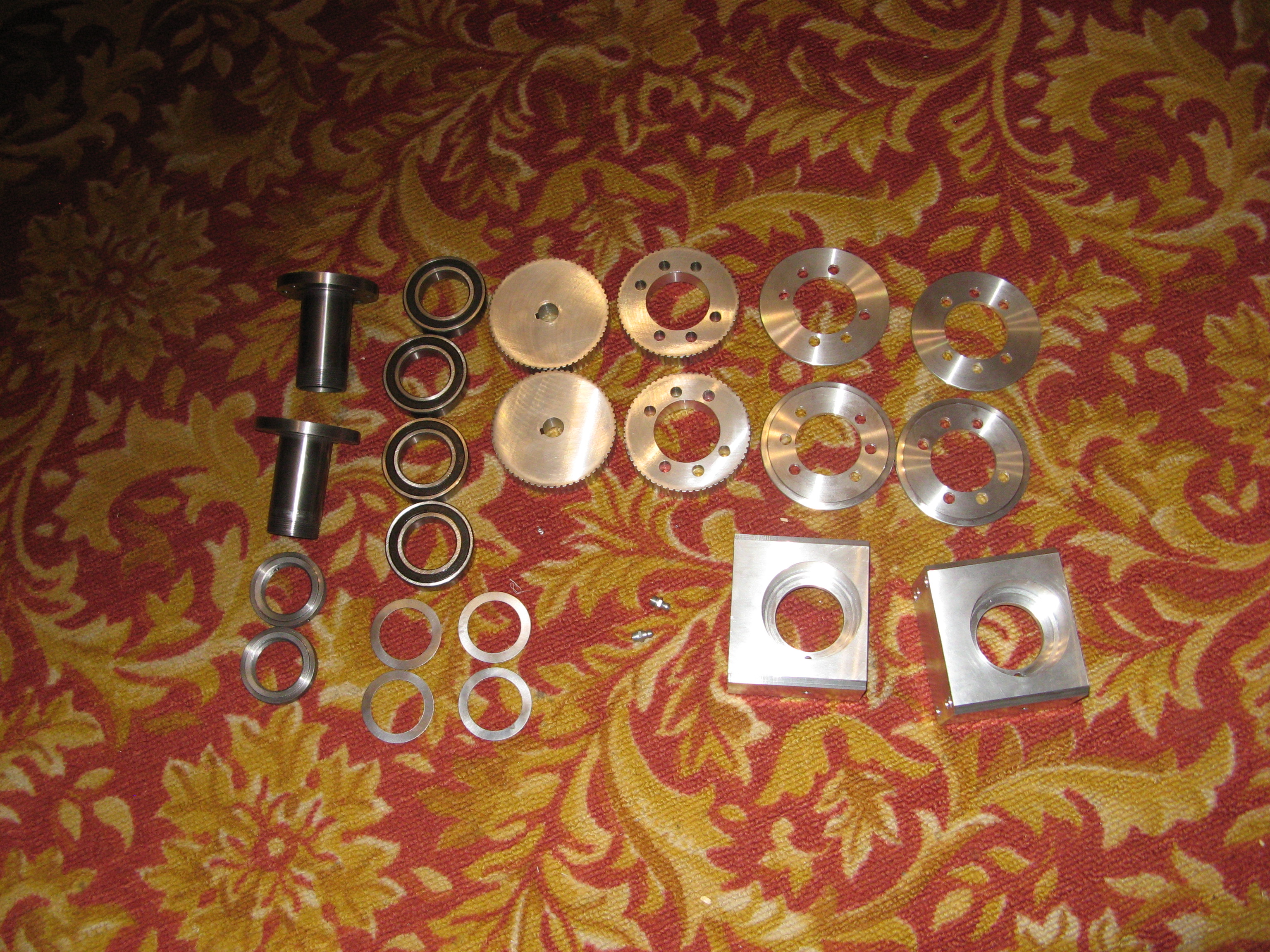 фотки подряд самого процесса изготовления и конечного результата. отдельное внимание хотелось бы уделить фрезеровке шкивов - сделали мне дисковую фрезу, теперь сам профиль очень красивый + сопряжение с ремнем отличное. в процессе изготовления некоторые изменения пришли в конструкцию (немного поменял расточку корпуса, сделал более правильные шайбы-ограничители ремня), правда это часто было основано на том что не было нужного материала или же было долго ждать порезки. работой доволен, было реально интересно местами. ну и фрезер радует