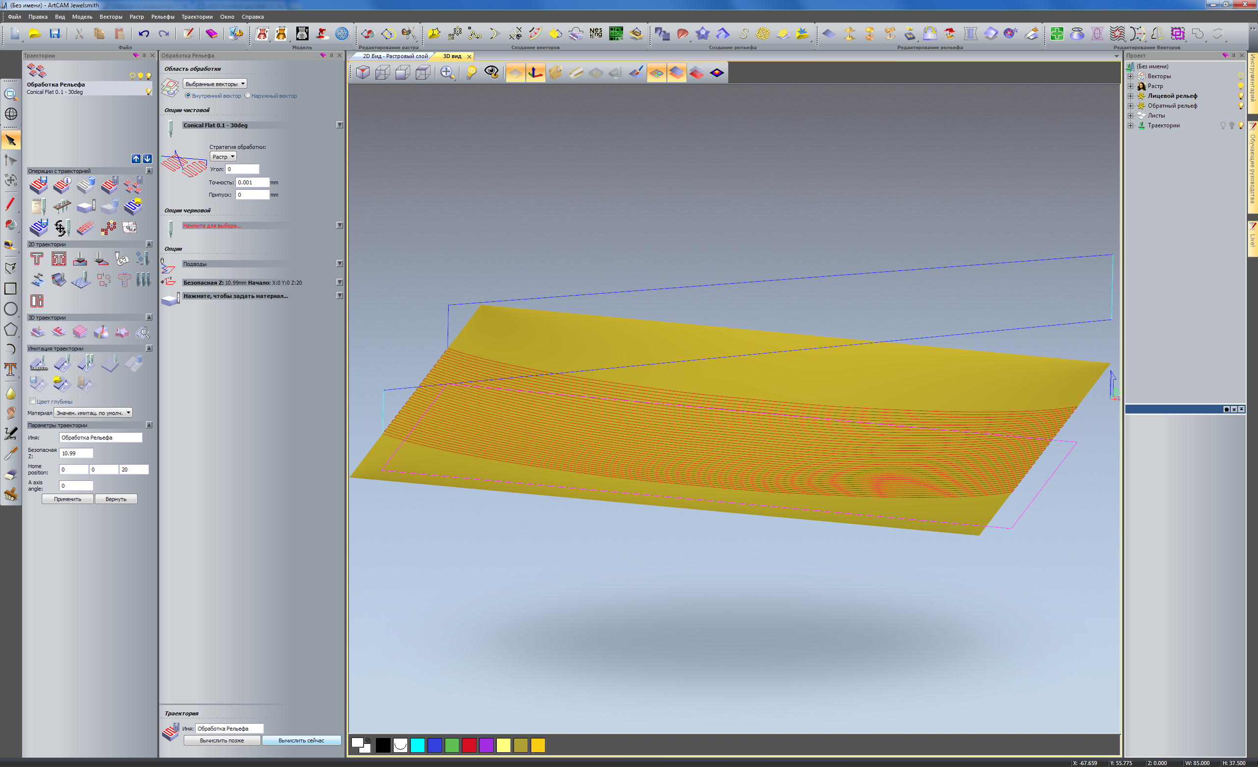 Потом выделил прямоугольную область и создал траекторию обработки рельефа по этому рельефу: