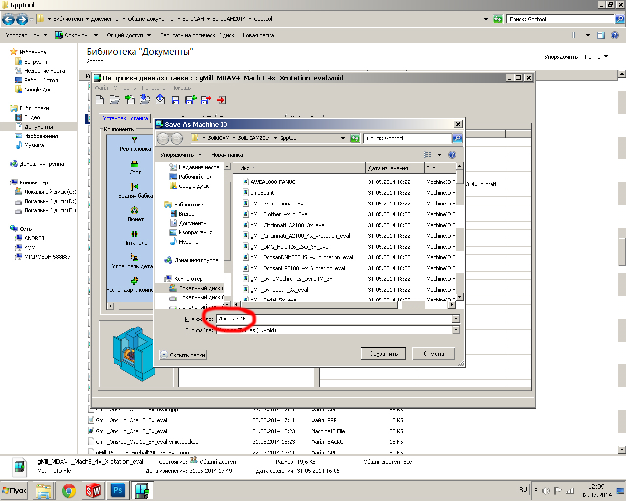 И сохраняю фаил с каким либо названием своего станка