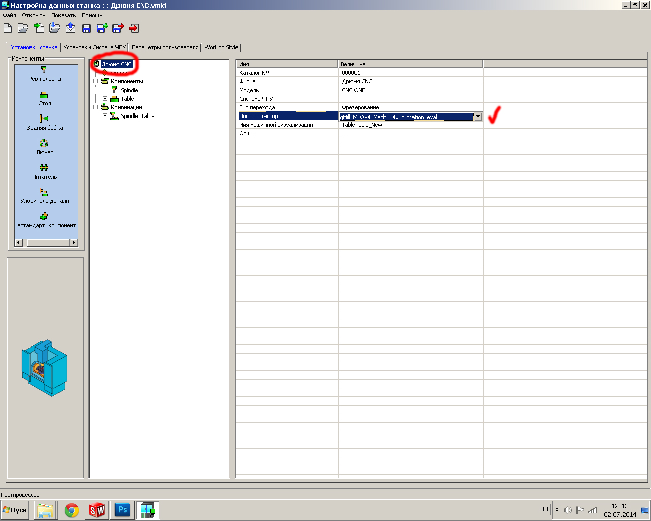Теперь у меня в программе появилось название моего станка, и под него выбираю постпроцессор для Mach3