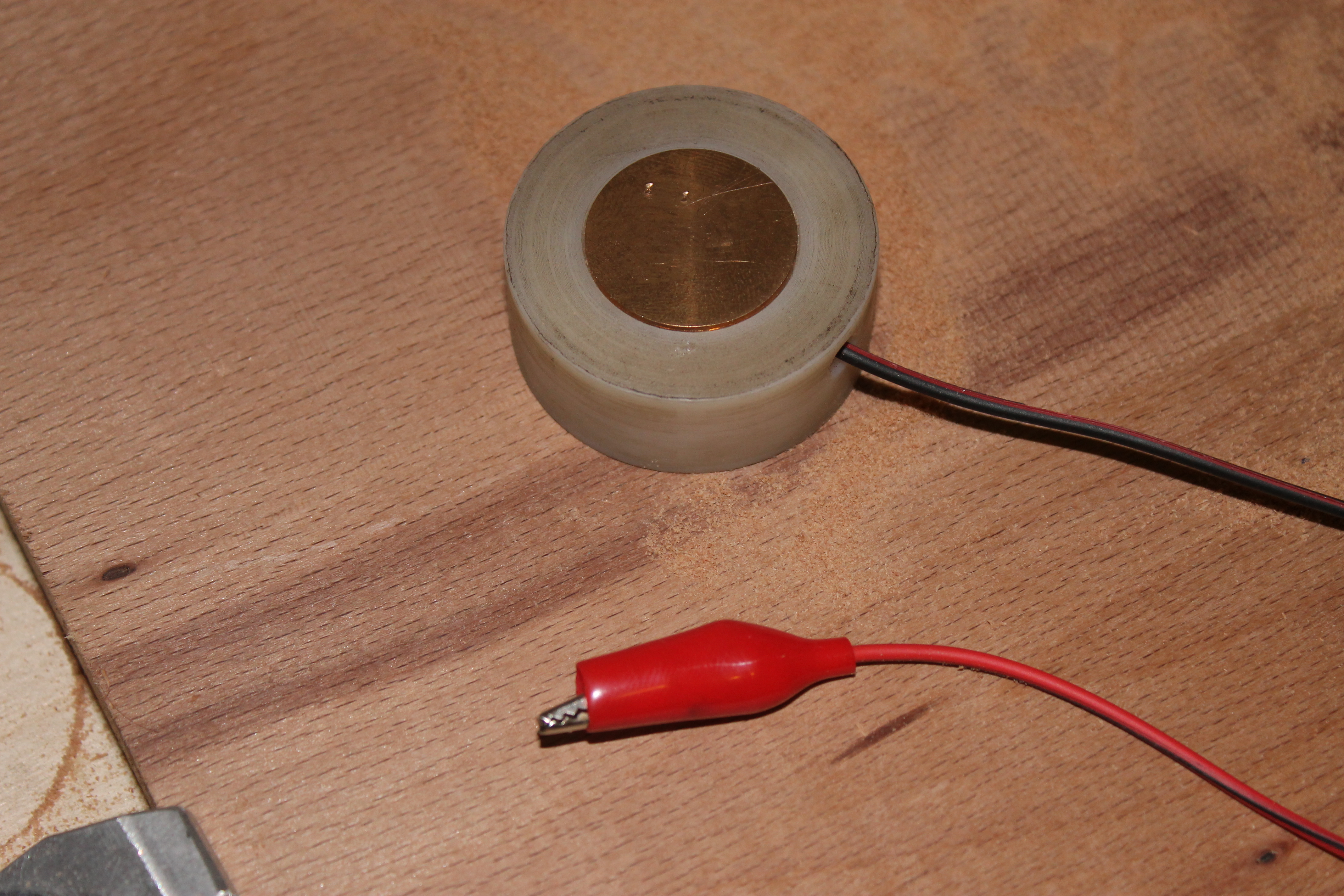 Сделал датчик компенсации длины инструмента. В общем это просто таблетка из бронзы запрессованная в корпус и капралона.