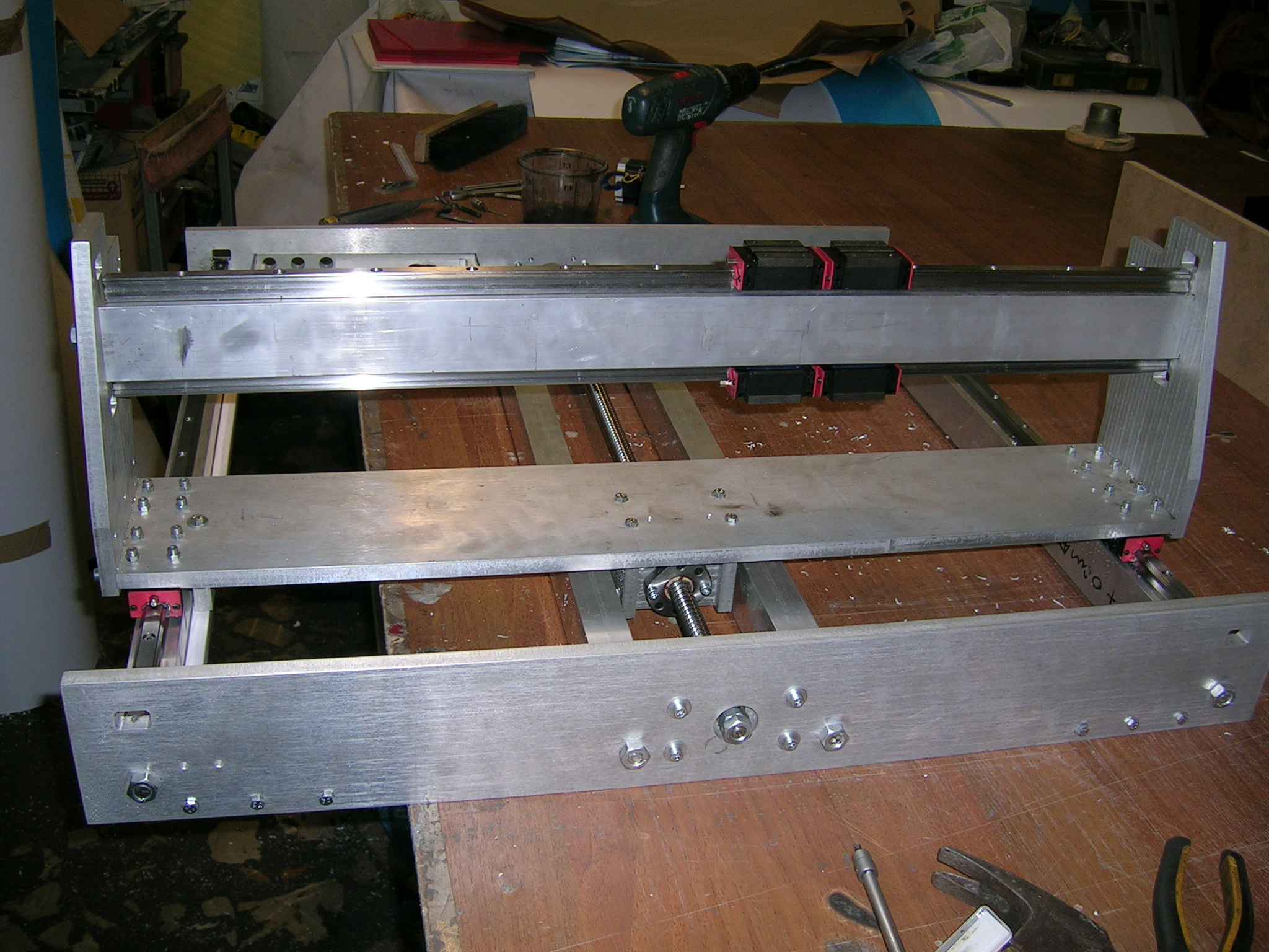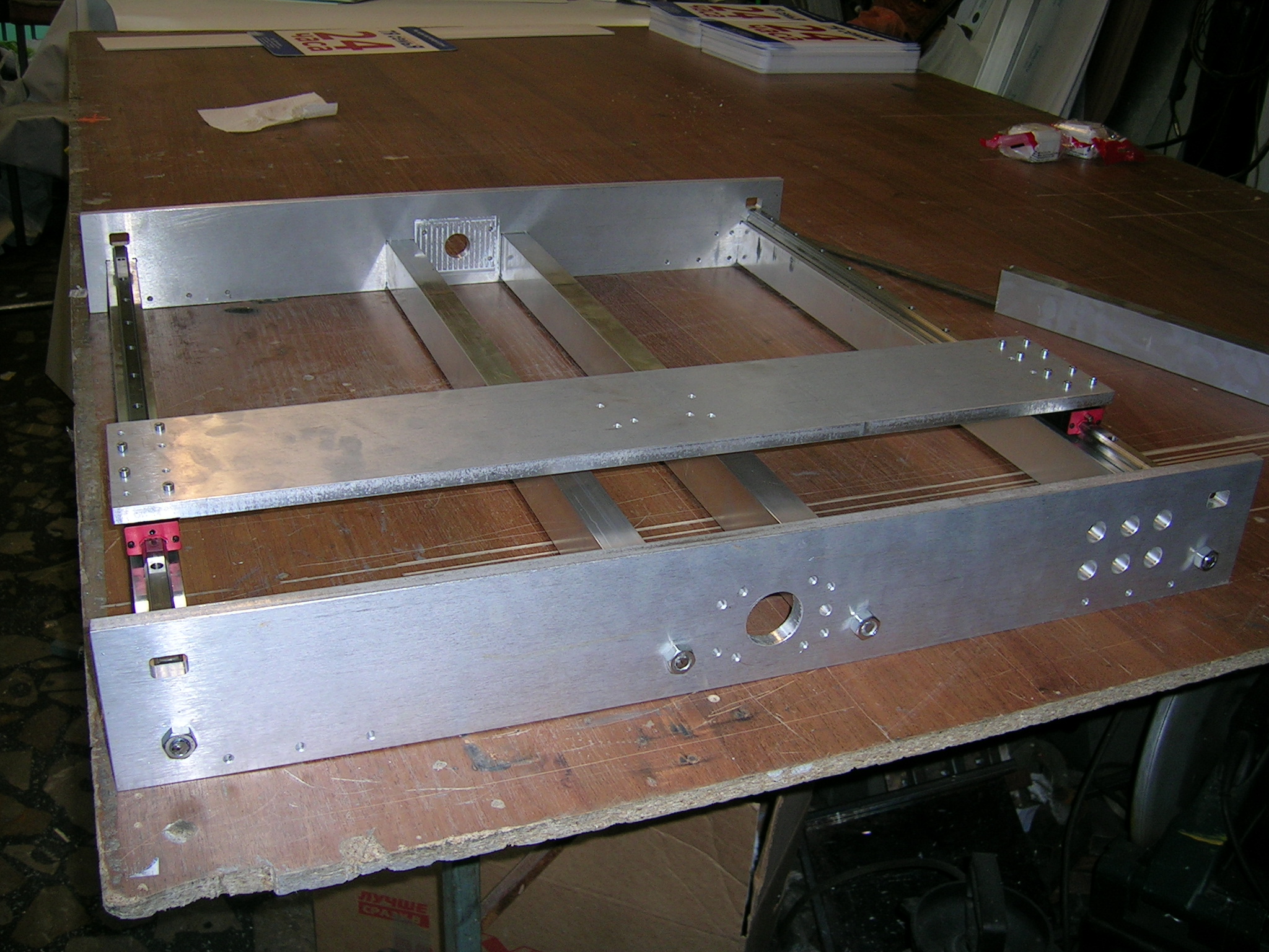 Так под столом винт стоит, куда его деть ? правда можно было рельсы на бок/низ повесить..... ну поздно уже :)