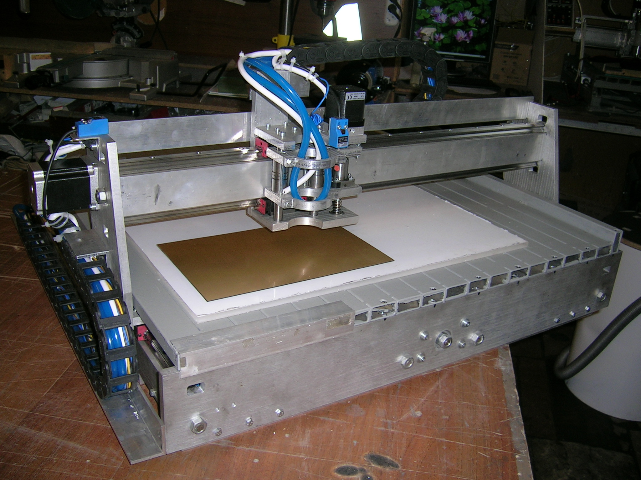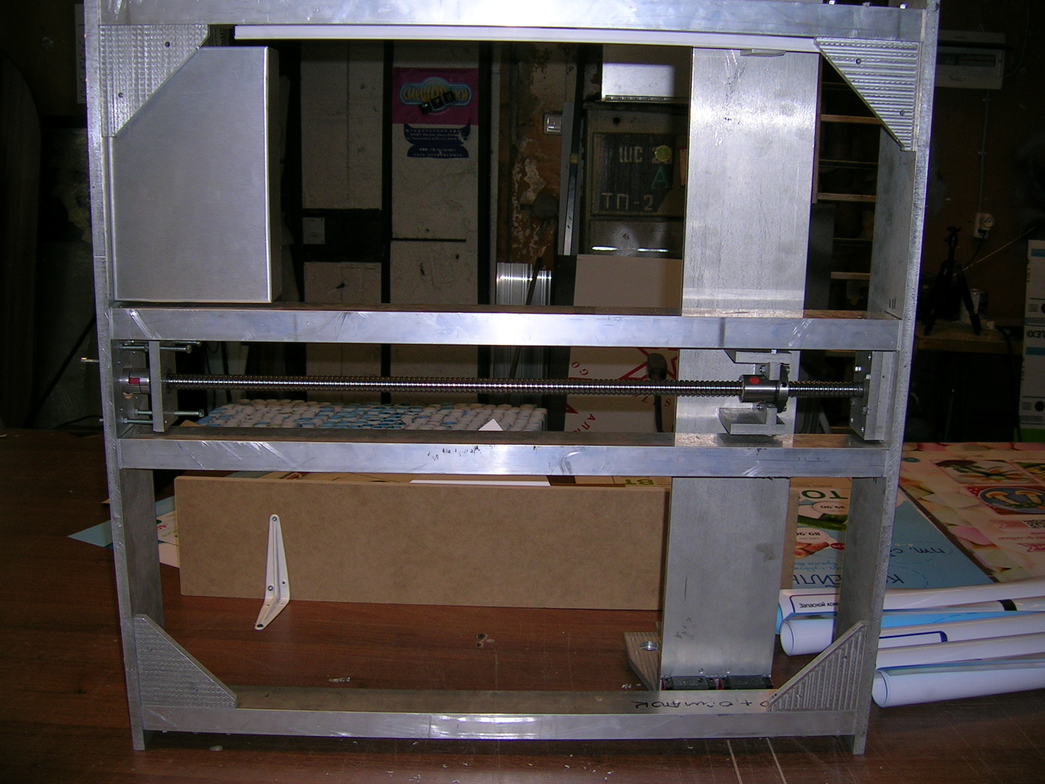 Ну на столе будет жертвенный стол из оргстекла его и выровняю по месту. Кстати на первом станке у меня стол проклеен снизу вибропластом что немного снизило шум при работе.