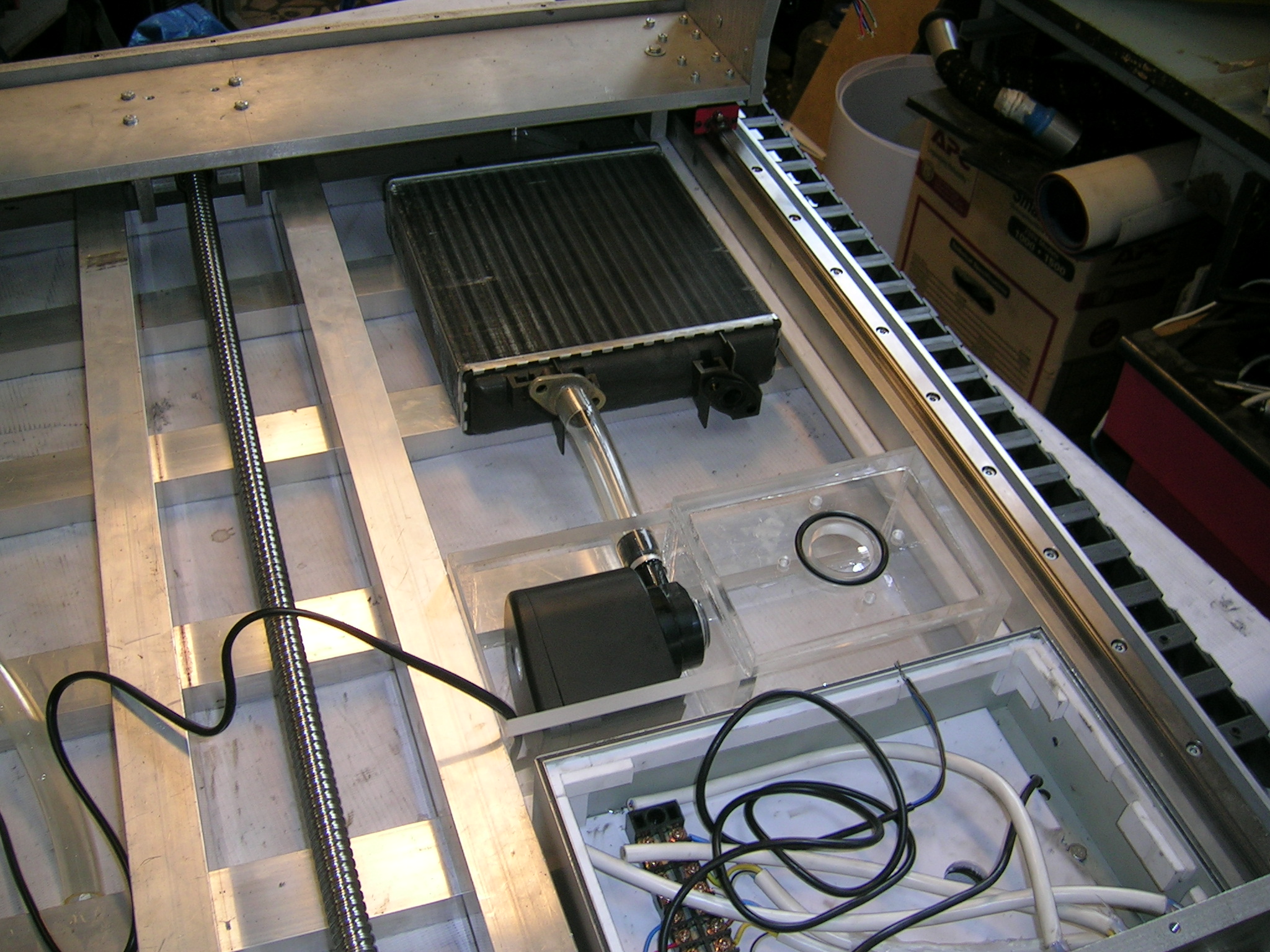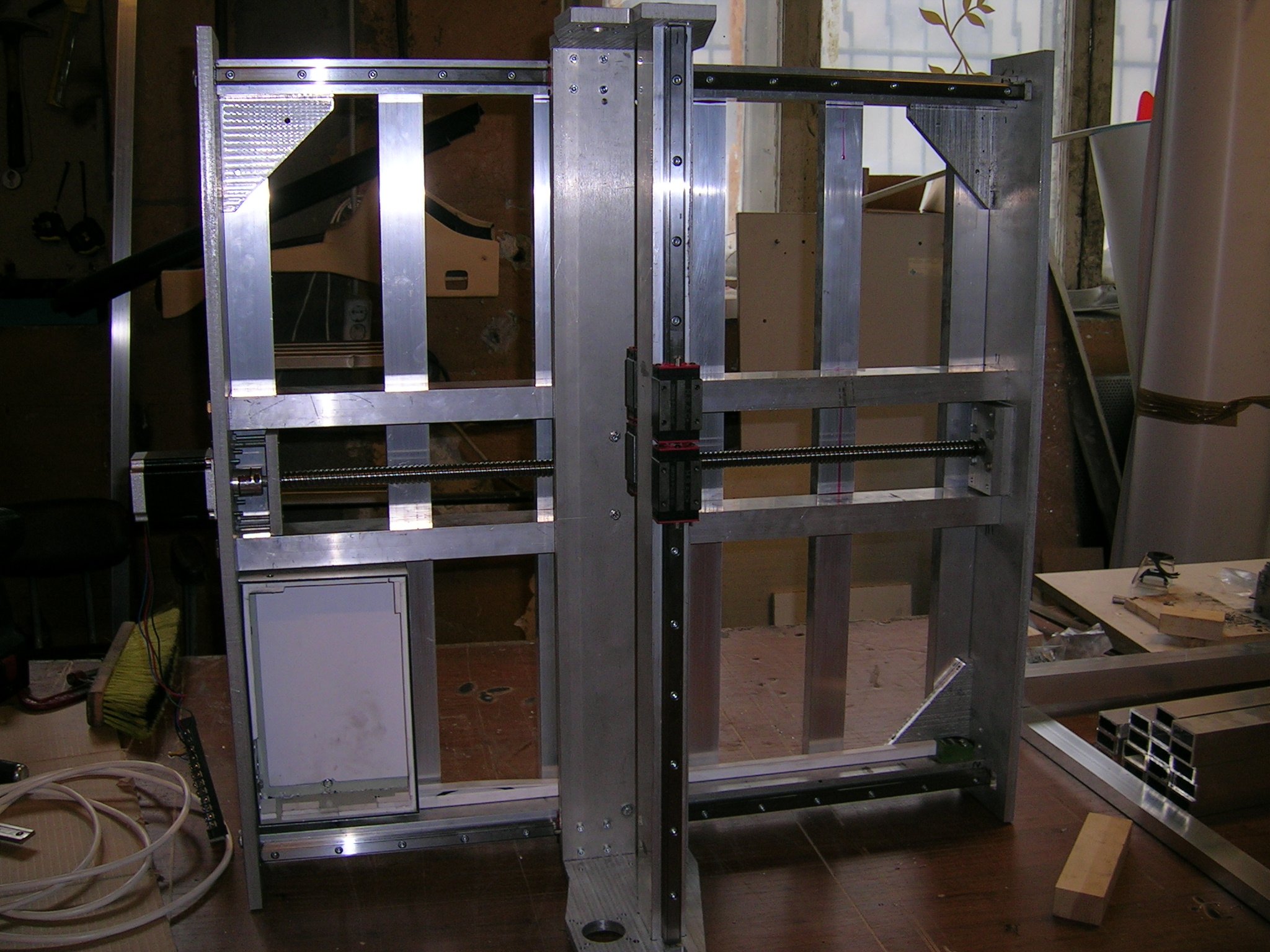 Осталось купить/поставить шпиндель, заполнить систему охлаждения, поставить стол. Пока тестил со старым контроллером, в плане купить другой с более мелким делением шага и возможно какой нибудь контролер к mach'у чтоб отказаться от LPT и использовать максимально мелкий шаг на двигателях.