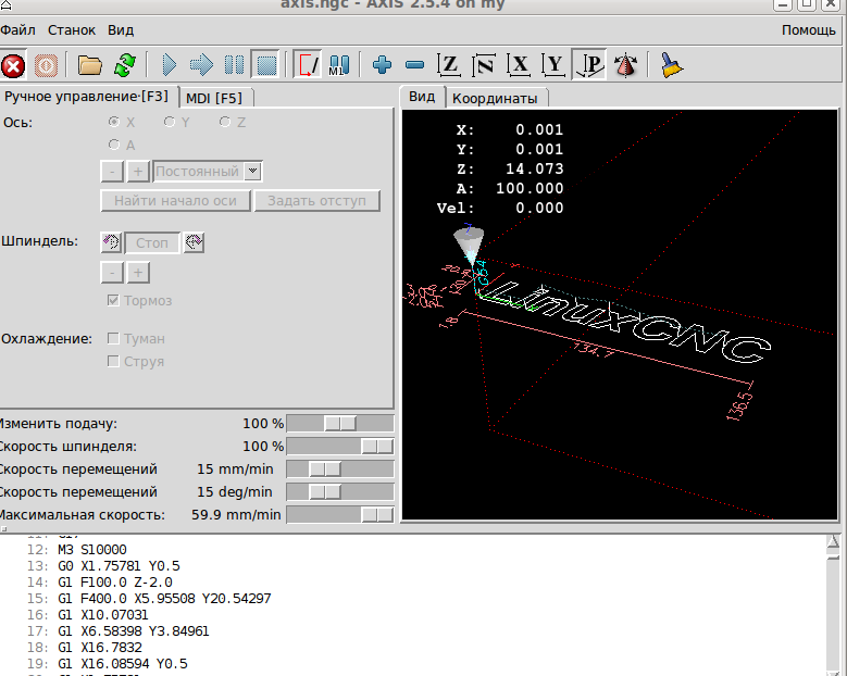 Kulibin74 писал(а):как в axis увеличить скорость обработки? у меня 15мм/мин !!!