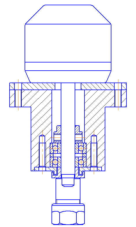 Вот недочертеж свой нашел сборочный. Только на нем не нарисован двигатель в разрезе, поэтому нужно понимать, что вал держится еще на верхнем подшипнике самого мотора (который я заменял на радиальный).