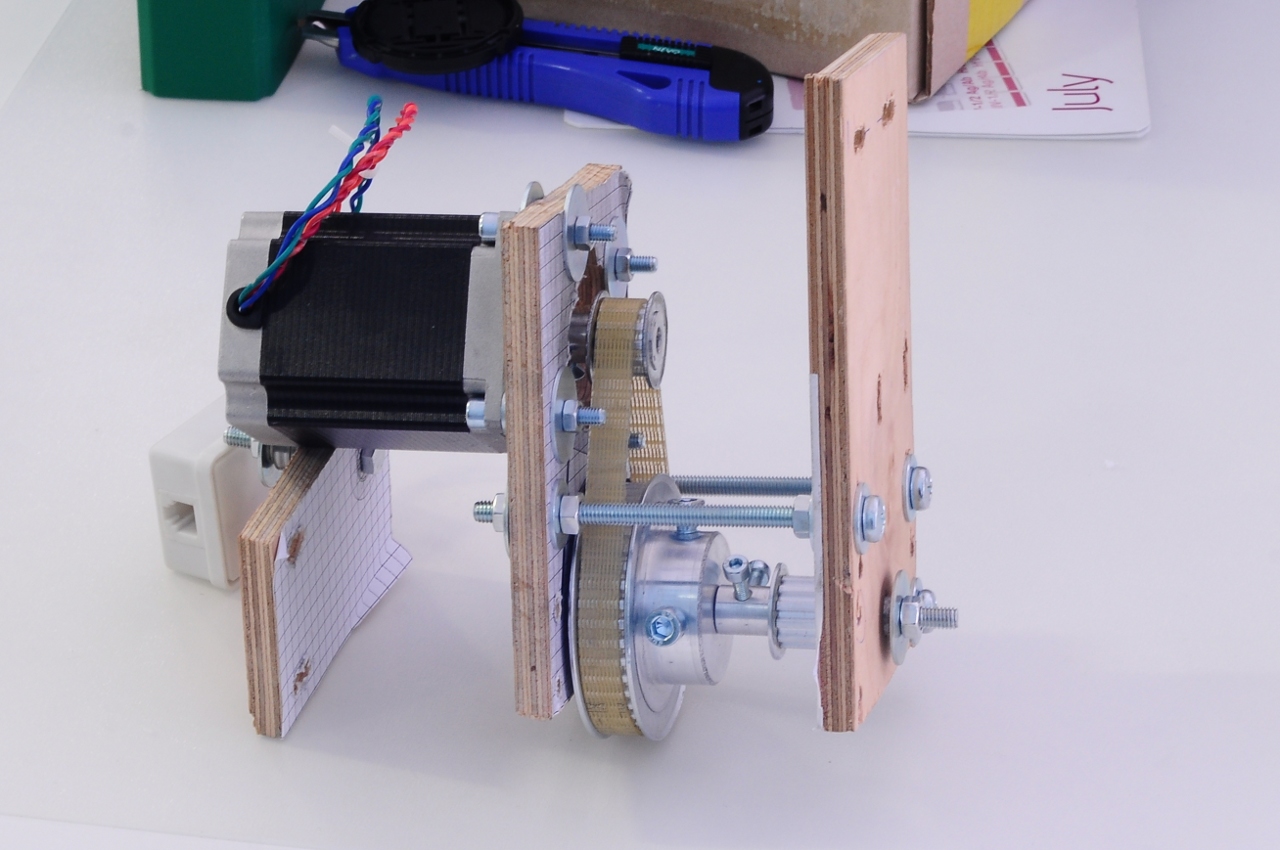 Собрал редуктор, и крепление двигателя для оси Х. Отверстие в большом шкиве оказалось 8мм пришлось колхозить и наращивать толщину болта М6 термоусадкой в 4 слоя. Вроде держится