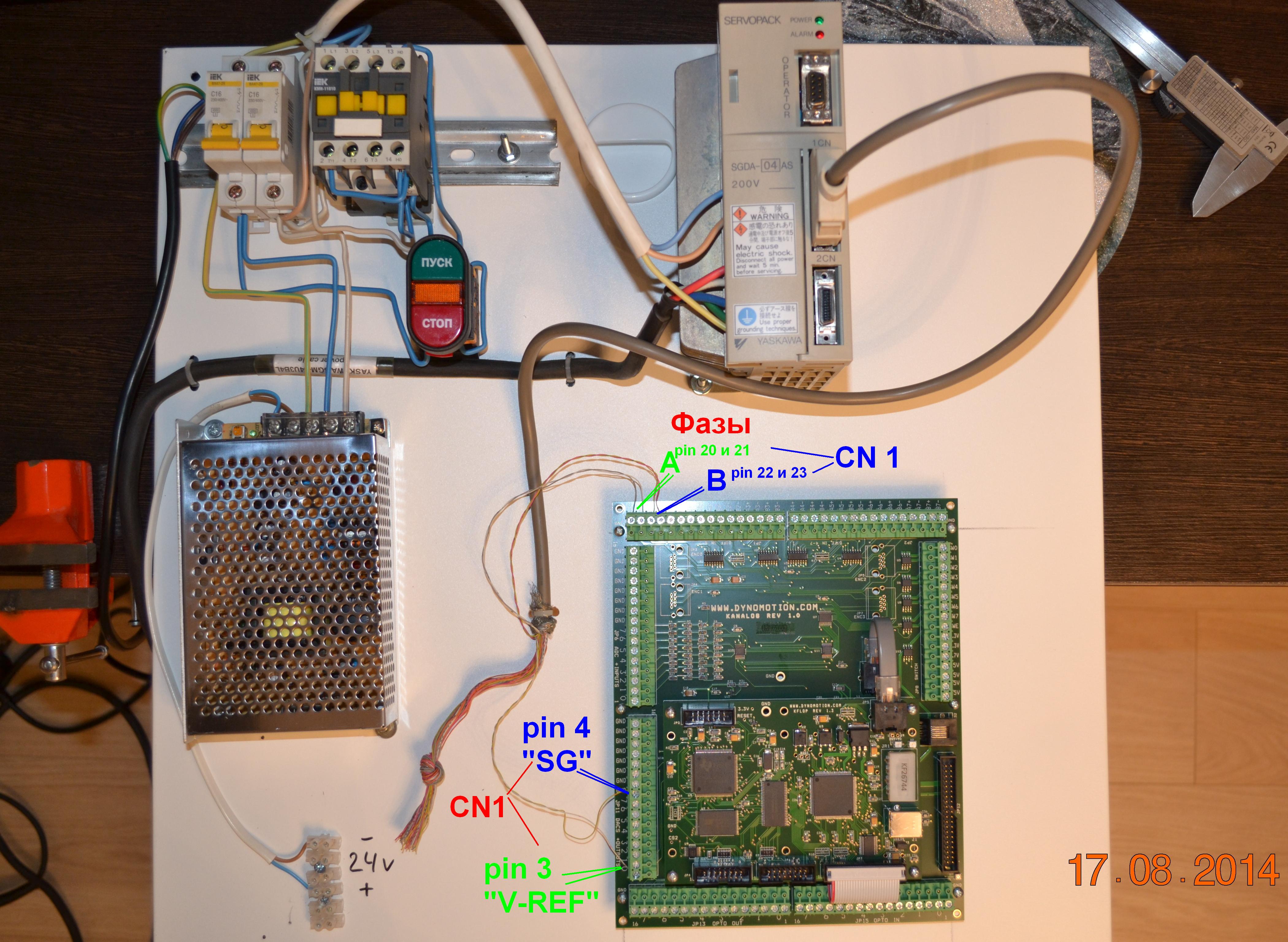 Для начала подсоедени на Каналог эти два провода к которым подводил напряжение с батарейки и выходы энкодера с сервопака А/А-, В/В-.