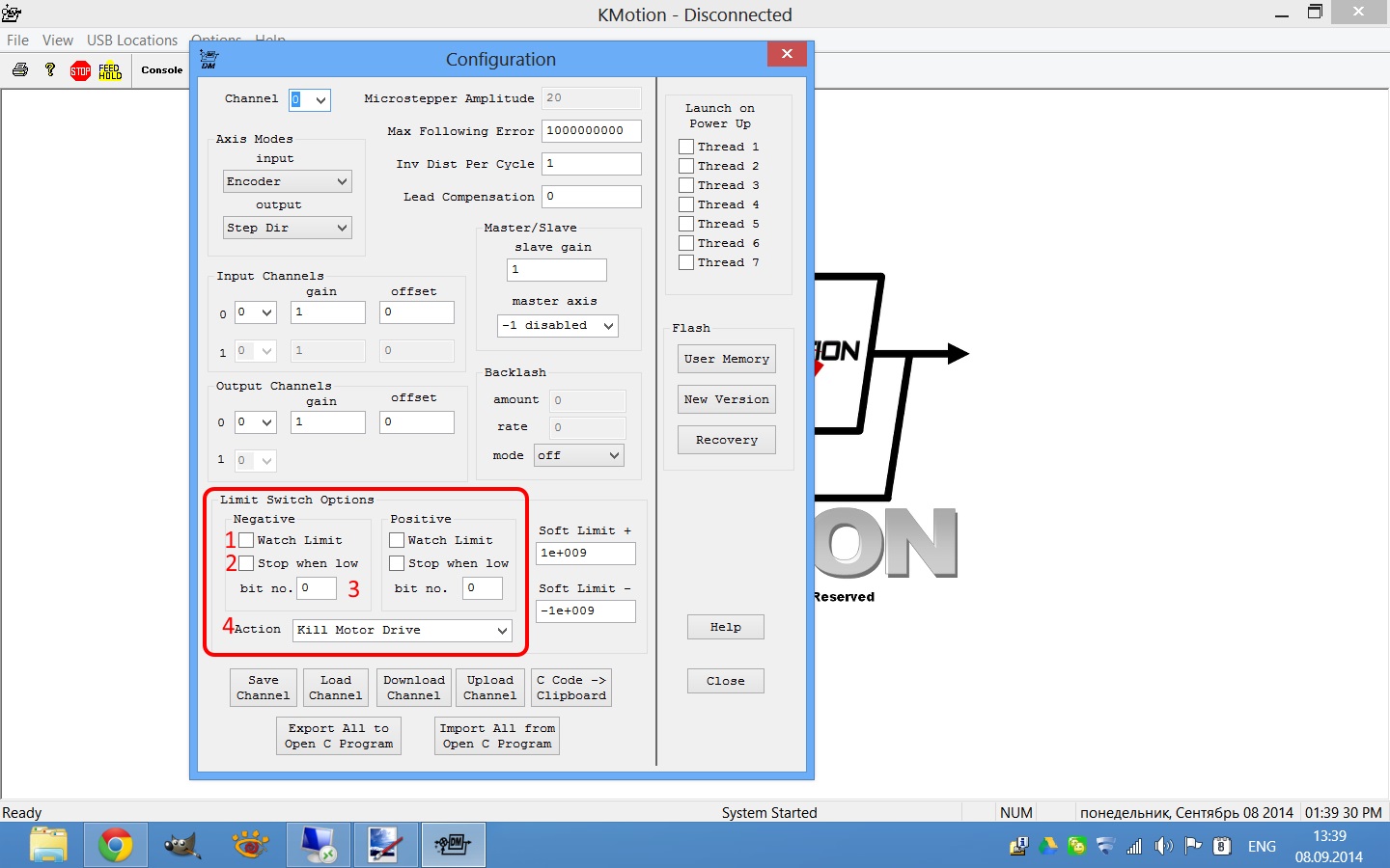 Нам нужны две программы: Kmotion для настройки контроллера и KmotionCNC для управления станком.