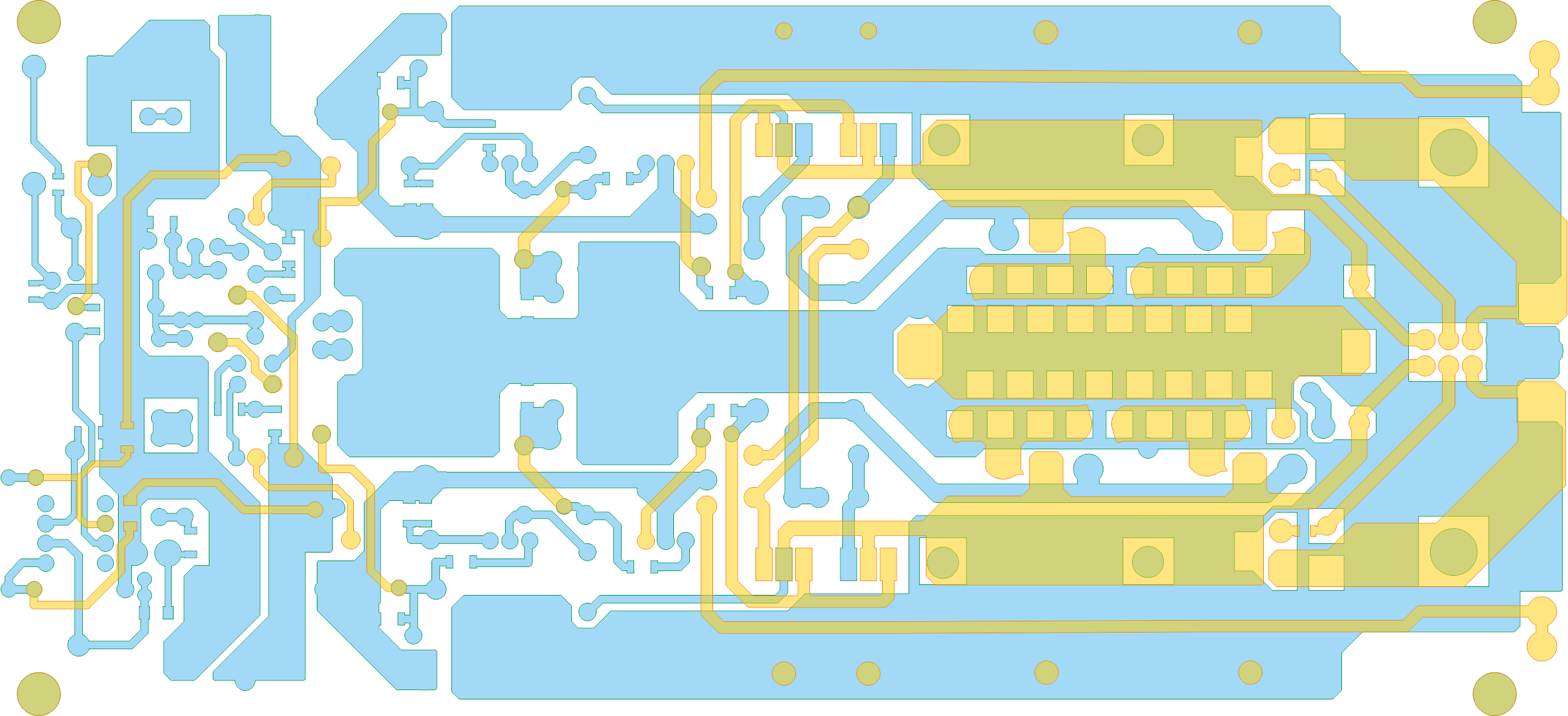 Вот что получается при наложении в CopperCAM:michael-yurov писал(а):Взял гербер файлы из архива - они нормально совпадают. И начало координат совпадает.AlexNikov писал(а):Во вложении печатка в Лайауте, нижний слой зеркально и верхний слой. Спасибо
