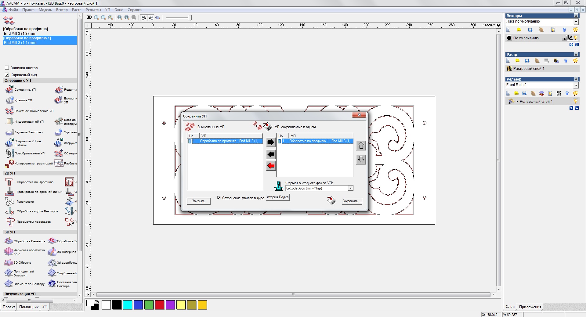 Имею такую картинку. Постпроцессор - G-code Arcs (mm)