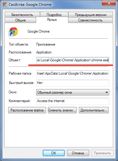 Вот здесь в свойствах ярлыка, которым запускаешь браузер нужно проверить, что запускается именно браузер, и что нет никаких дополнительных параметров командной строки.