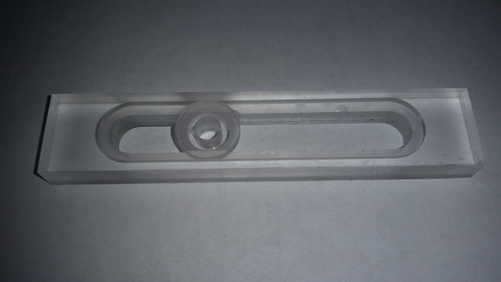 Собственно изделие на станке и для станка: башмак (прижим) для крепления заготовок и выставления границ. Это пока первая модификация, без прижимной пружины и коромысла для прижима толстых деталей, без скоса и четверти, без держателя для винтов, так, чтобы подогнать детали друг к другу и проверить насколько мои програмистсткие изыски способны быть трансформированы в реальнось. Но именно этим приспособлением я креплю к жертвенному столу более мудрых его последователей.