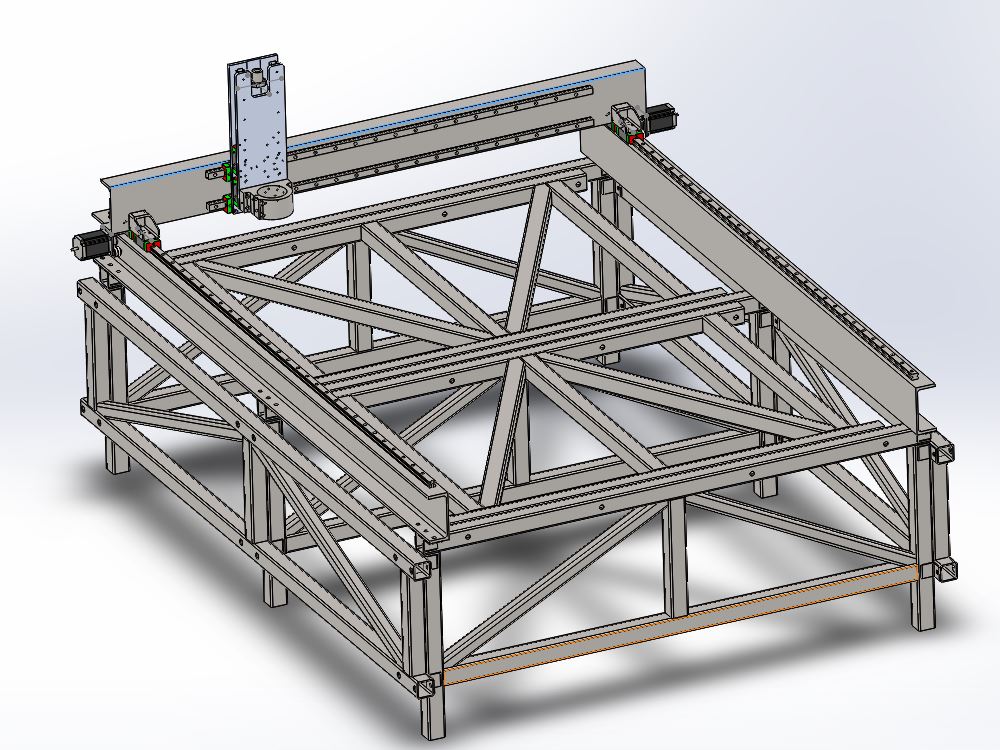Посмотрите как пришлось поставить рельсы на портале - другого варианта не могу придумать, чтоб можно было одеть ось. Может что предложите более рациональное?