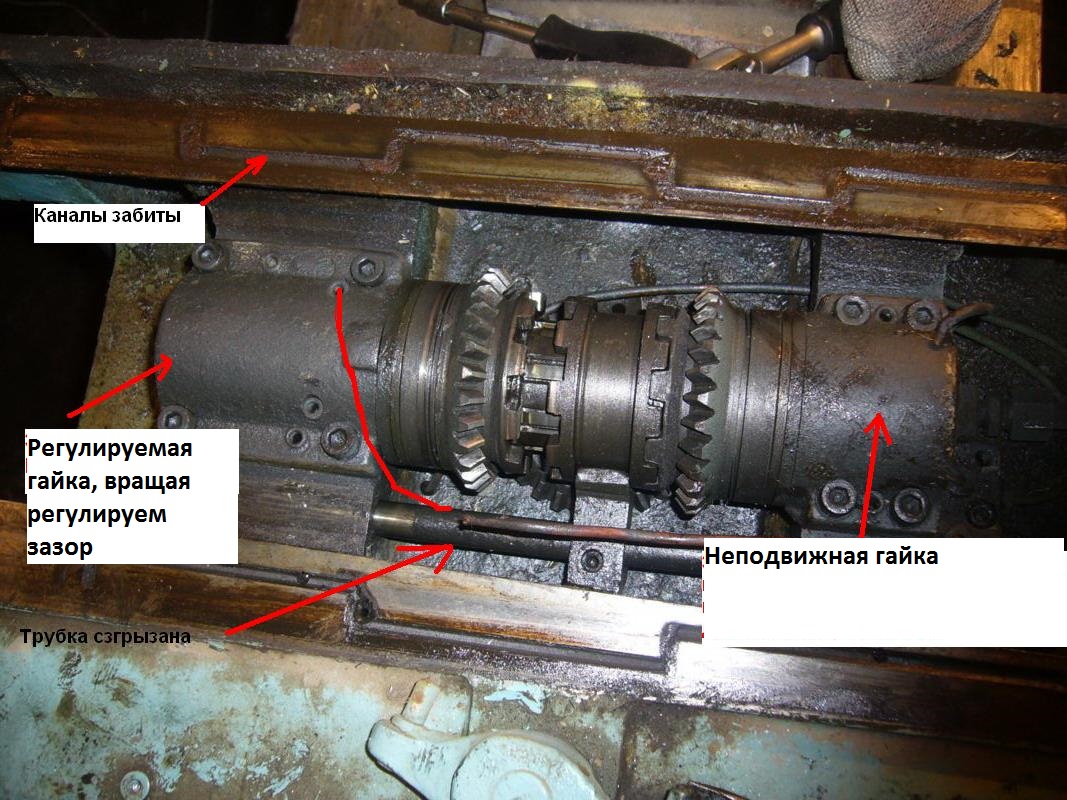 Одна гайка неподвижная(запрессована), а другую можно поворачивать если крутить винт регулировки. Вращая гайку выбираем люфтNick писал(а):И что за регилировака люфта? Как она работает?