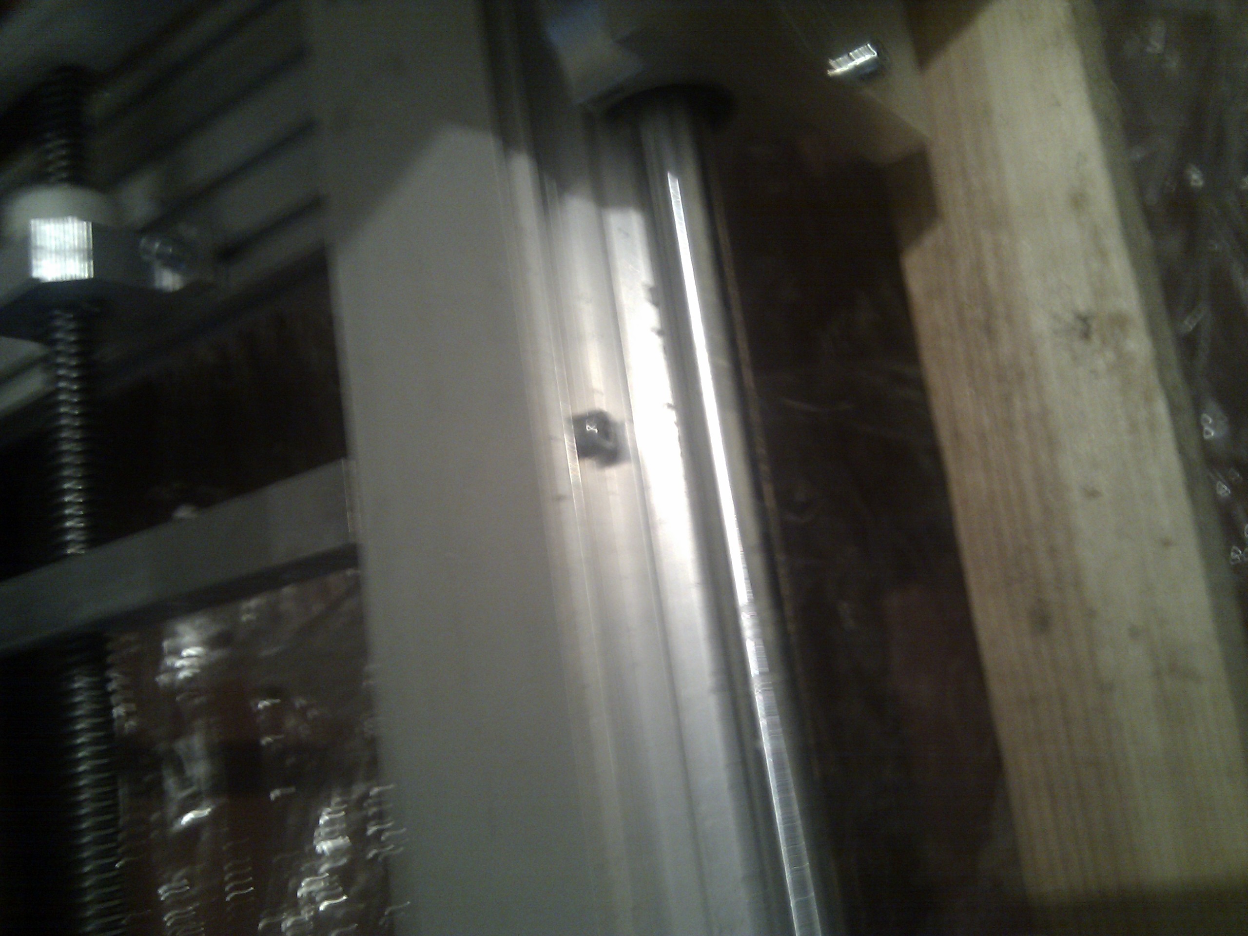 ладно, ось Z чуток подрихтовали, продольный люфт гайки 0.1мм, клинит в более нижнем положении но КЛИНИТ, думаю снять винты и подложить фольгу.