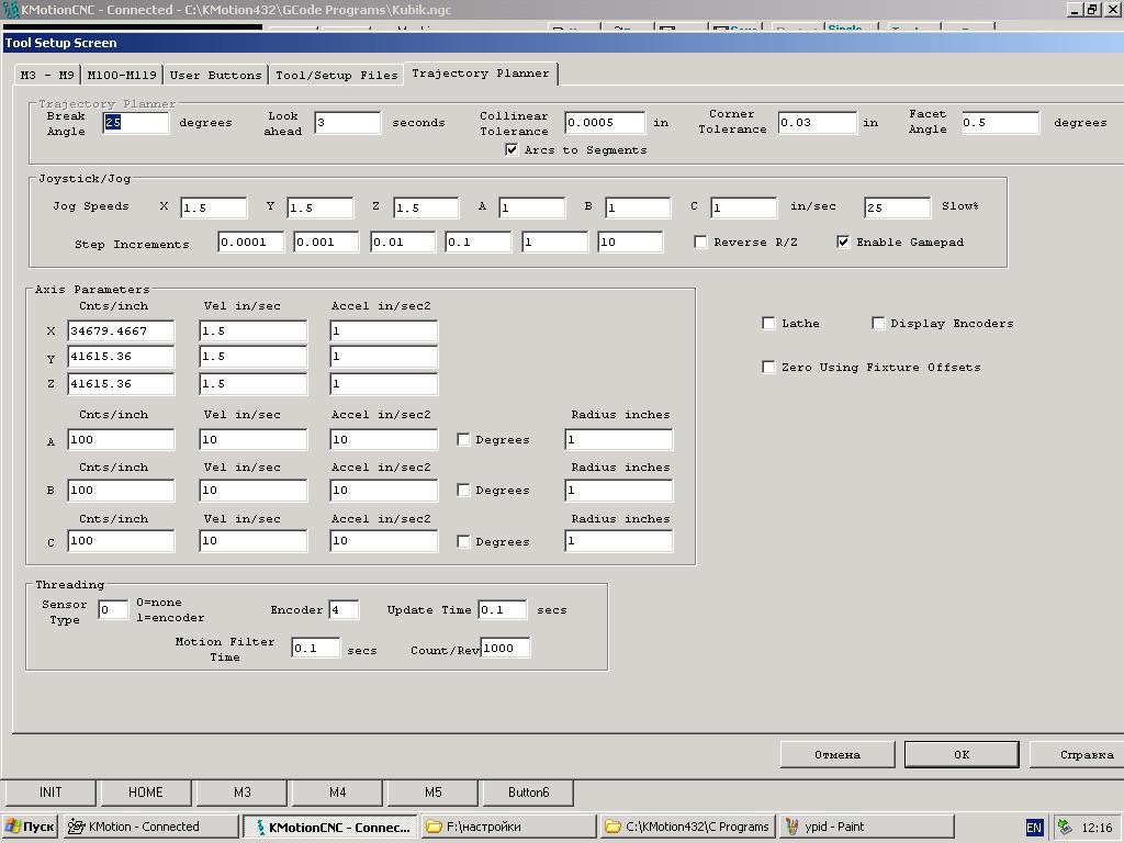 при запуске программ все три оси проходят растояние меньше 5 мм, останавливаются далеко не доходя до концевиков, обнуляются и отключаются,