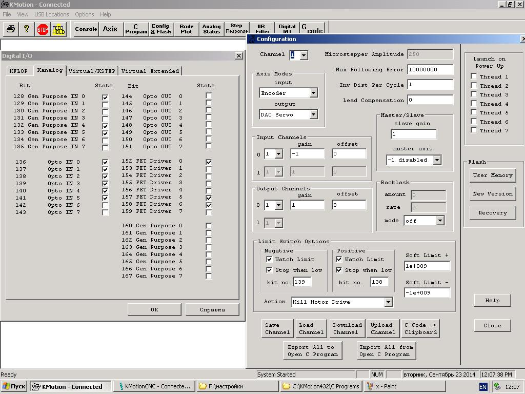 Re: Ввод в эксплуатацию ЧПУ системы на основе контроллера Kf