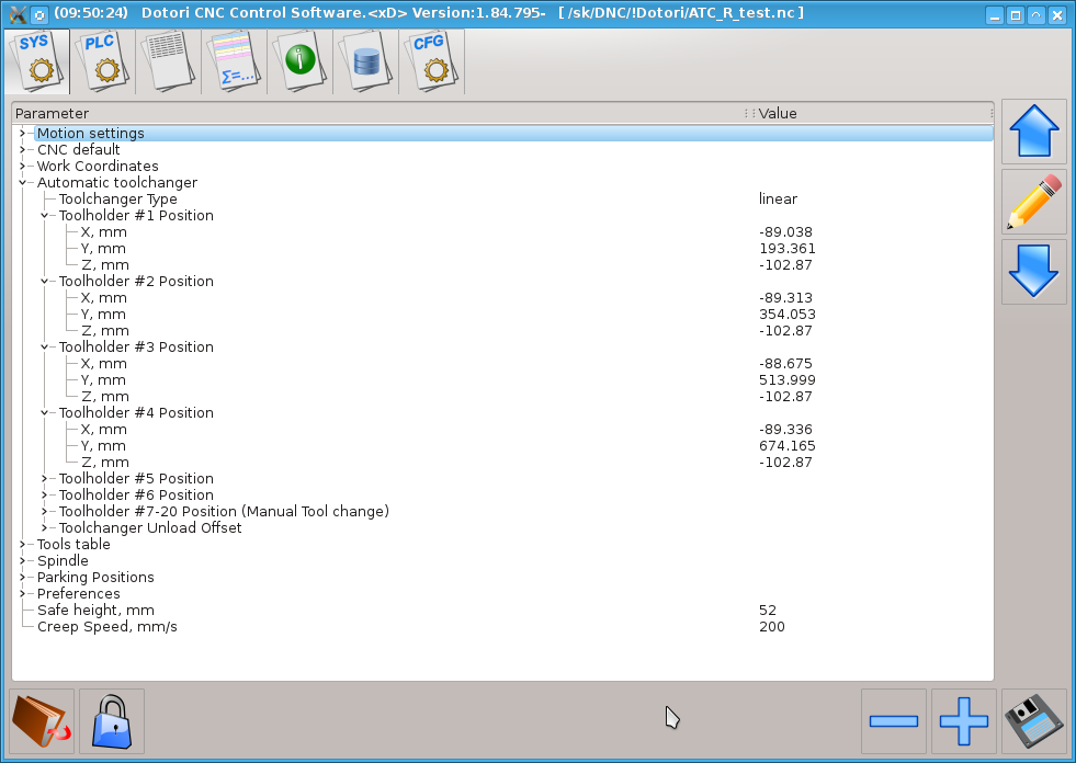 Здесь окно настроек, куда вводятся положения инструментов для линейной автосмены.