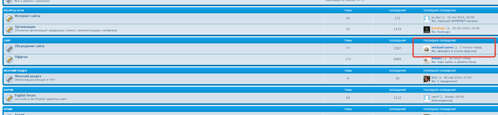 аватарки в списке форумов