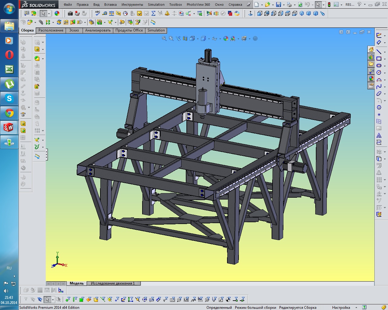 объясните - зачем вам силовой каркас между ногами, если вверх от него ничего не идет ?? ну будут у вас ноги реально жестко стоят.. и фигли толку ?? вам жесткие ноги нужны или жесткий станок ??? спереди на него посмотрите - реальная "рамка" без каких то силовых элементов...