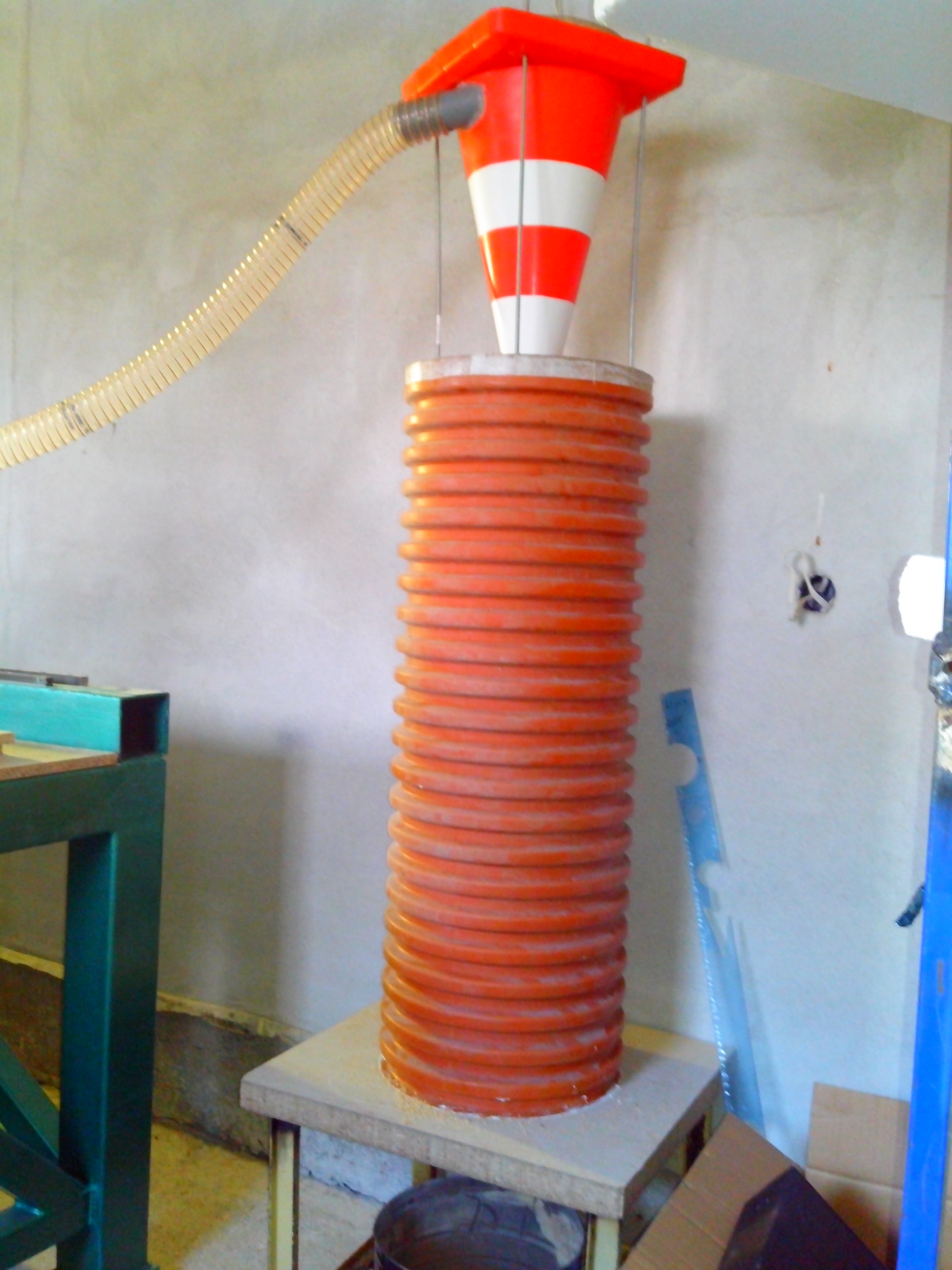 Попутно соорудил циклон из того что было под рукой, остался доволен. Но вот саму щетку сделал из дерева так на пробу, переделаю на силиконовые лепестки с разной длиной. В качестве бочки гофрированная дренажная труба, при перекрытии доступа воздуха она просто пружинит (сжимается как гармошка незначительно). Стружку "сосет" пока керхер думаю чем заменить.