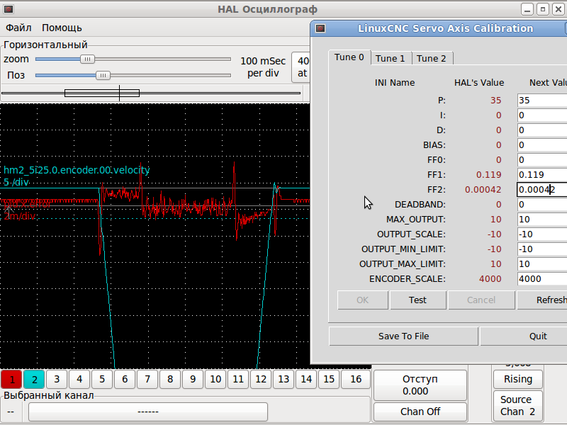 Ну не сильно изменилось, исчезли дополнительные колебания, а так в перделах сотки как и раньше....aftaev писал(а):А это с теме же настройками ПИДа в LCNC, но после автонастройки сервы через ПО Дельты (ASDA_Soft).