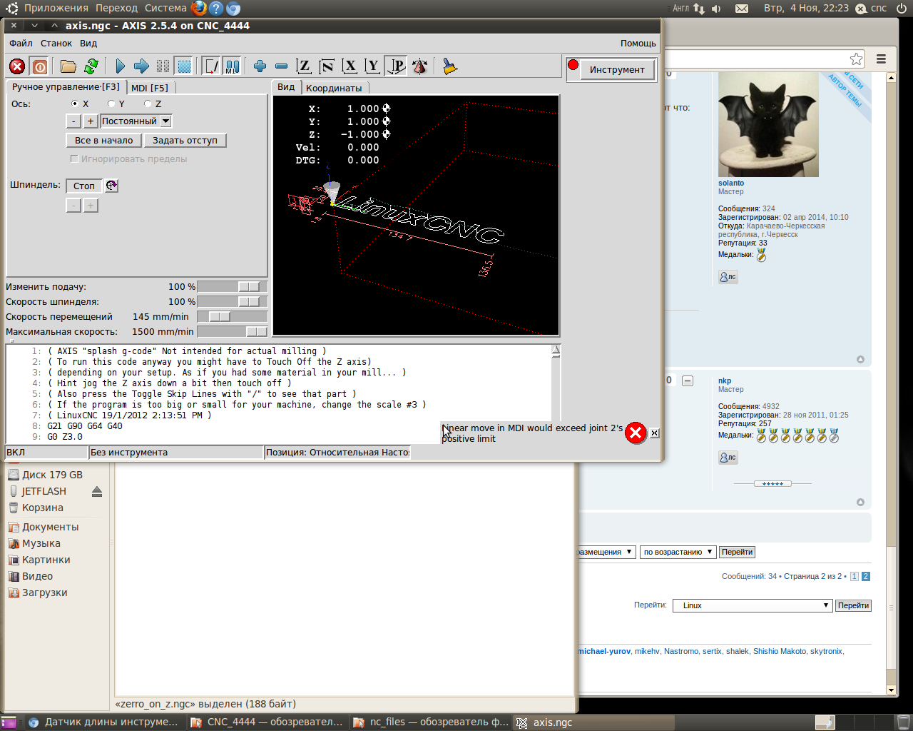halui.mdi-command-00 (?)NightV писал(а):в ini файле в разделе [HALUI] вставь (первой строчкой, тогда он будет halui.mdi-command-01)