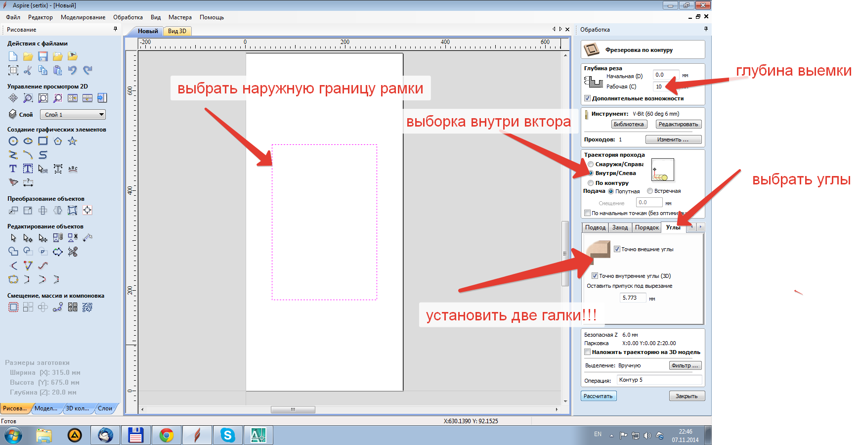 кстати да - интересный вопрос! При гравировке по средней линии скругляется внутренний угол ,а вот при гравировке(точнее выборке) ПО вектору - внешний.
