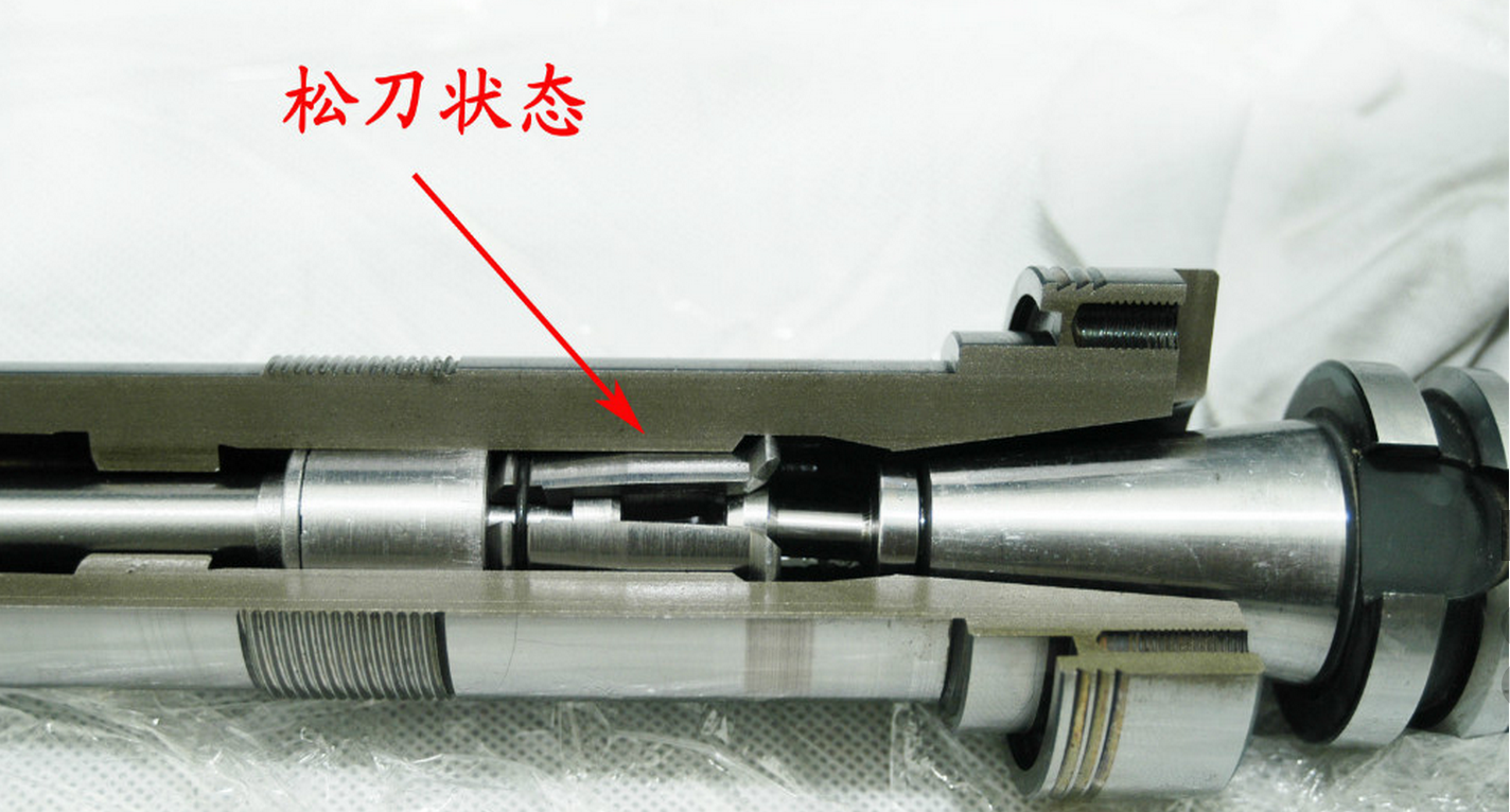 Саня, как оно по научному называется не знаю. Внутри шпинделя шток на пружинах, который тянет оправку за хвостовик внутрь конуса, а чтобы вынуть оправку, то нужно с хвоста шпинделя надавить на этот шток.