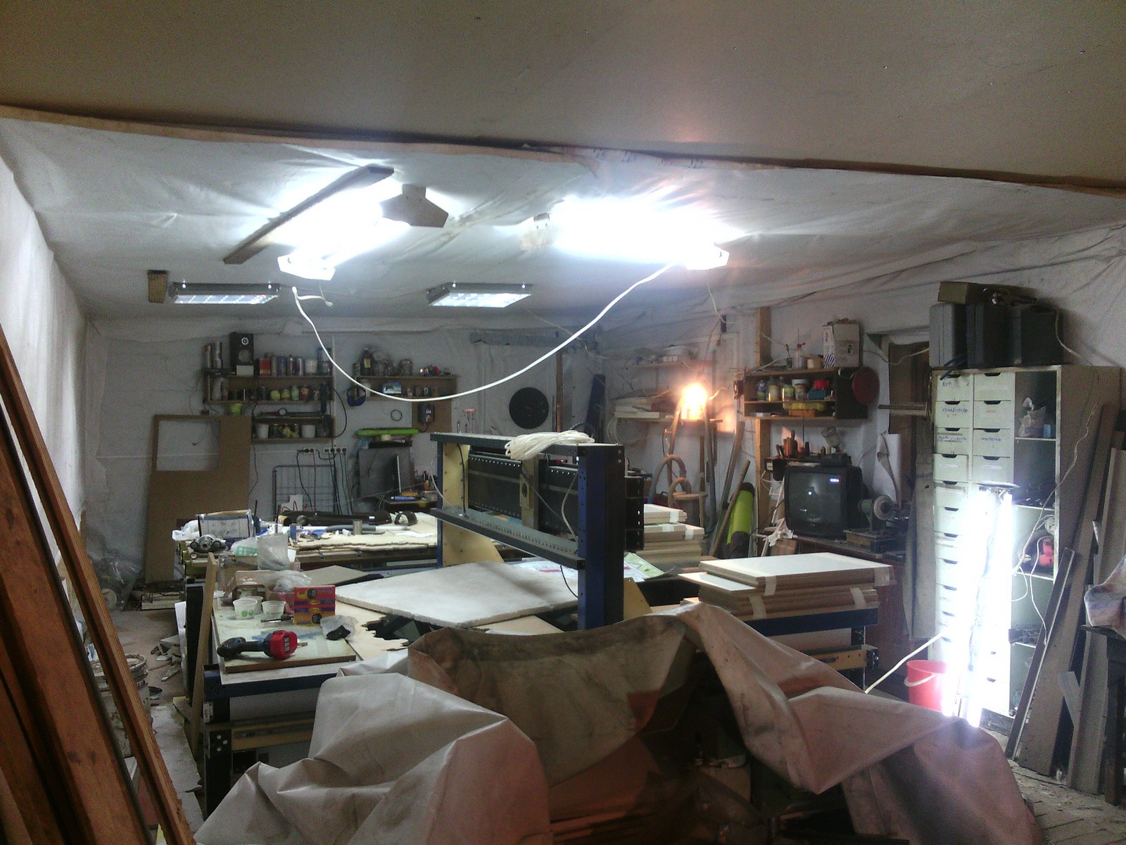 первый этап по мастерской закончен до новых заработков. уже виден станок и осталось убрать лишнее. через 2-3 дня прийдут детальки . успею двери сделать и прибратся .
