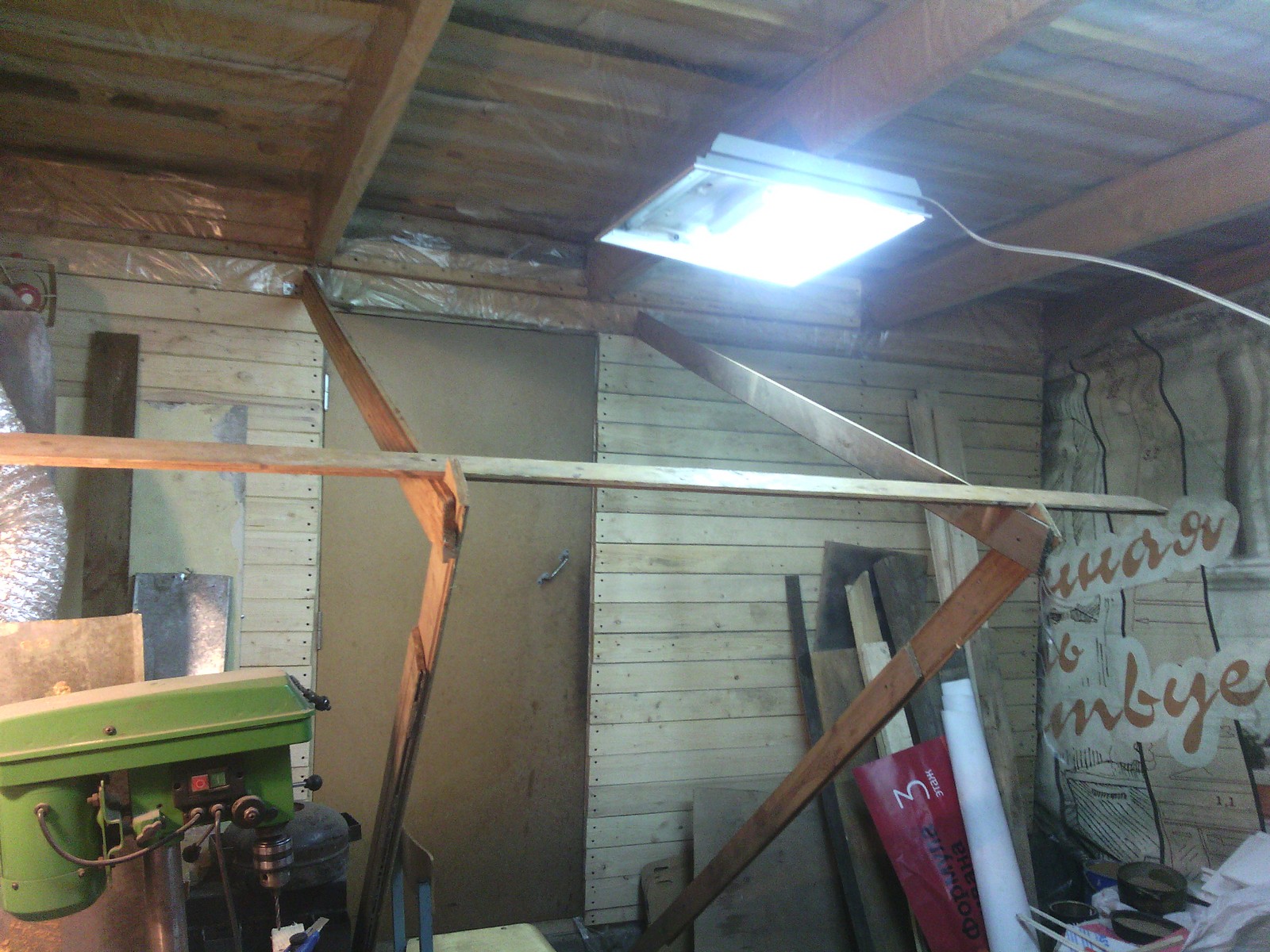 но так как мастерская это продолжение и основное место для станка , выложку фоткки как я один прикручивал к потолку двп. помошники в школе а делать надо .