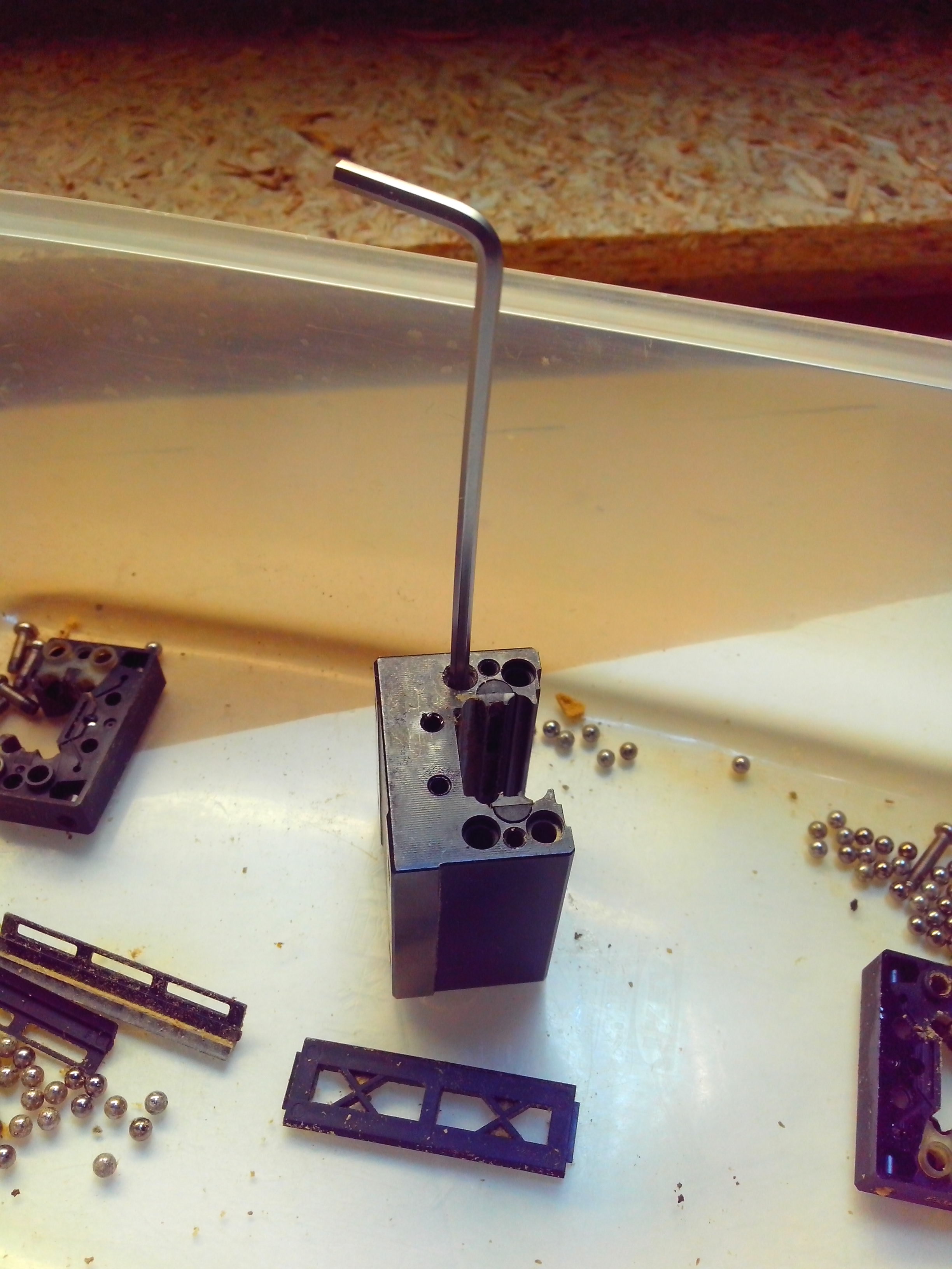 Все остальные каретки я тоже поснимал, но не разбирал просто замочил и промыл калошей. Шарики в них бегали без закусов.