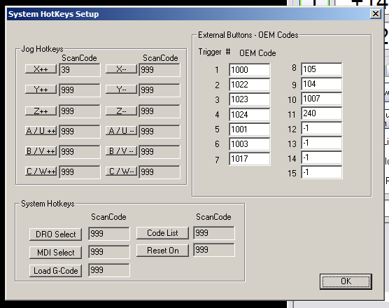 PKM писал(а):Сдается мне, что в данном контексте ОЕМ код - просто код кнопки. Используется для настройки горячих клавиш на различные функции Mach3.