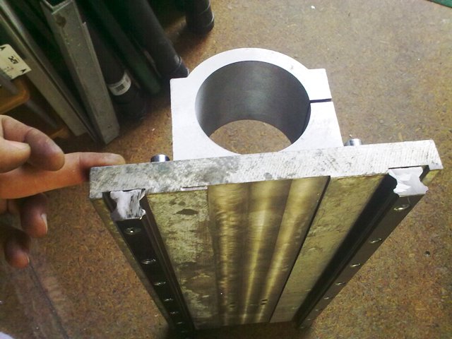 Сегодня досверлил отверстия в корпусе под гайку ШВП. Также Прикрепил одну направляющую на балку оси Y.
