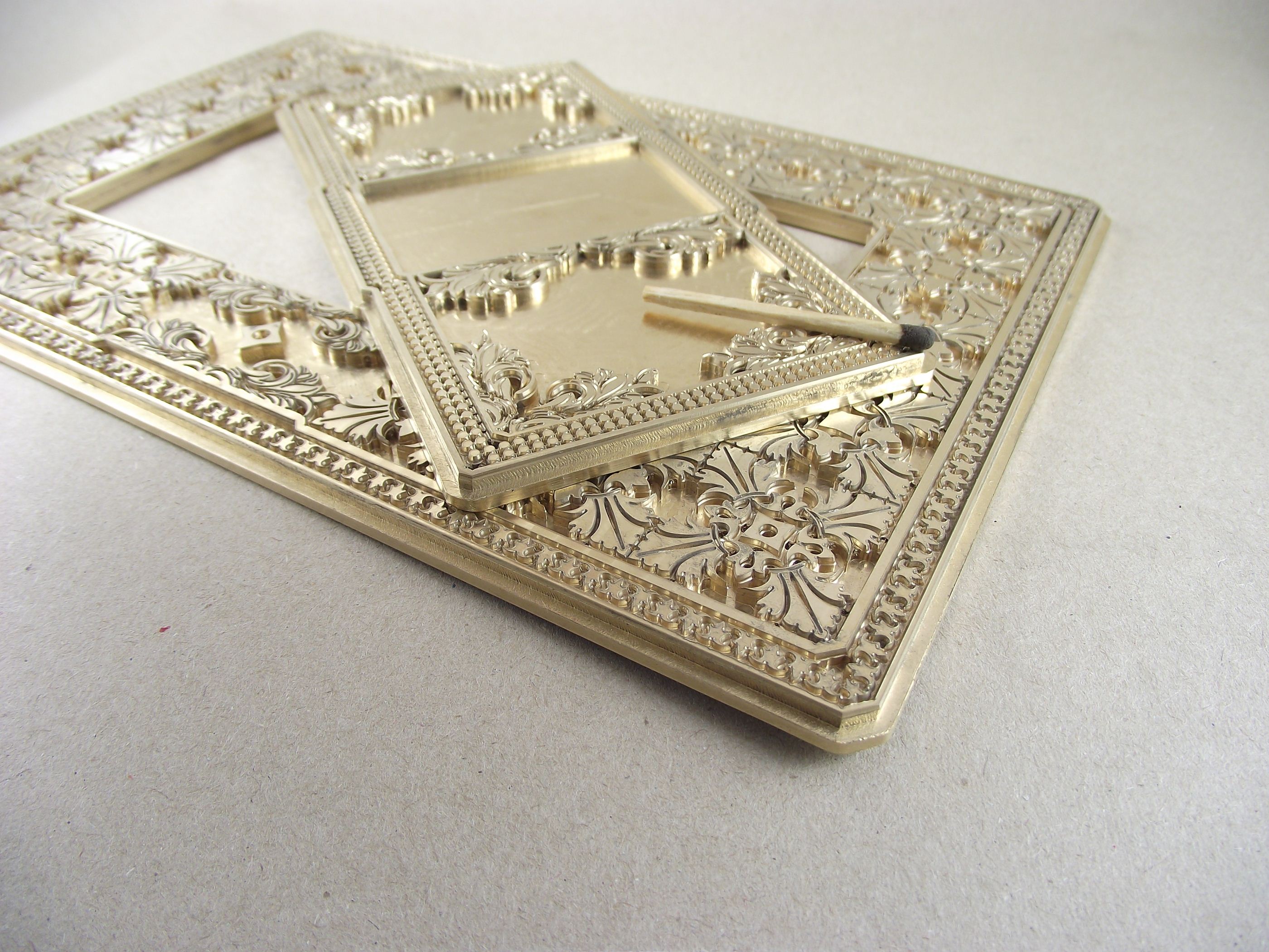 Можно сказать первые сложные (для меня) работы по мягким металлам на моём станочке - клише для тиснения кожи:
