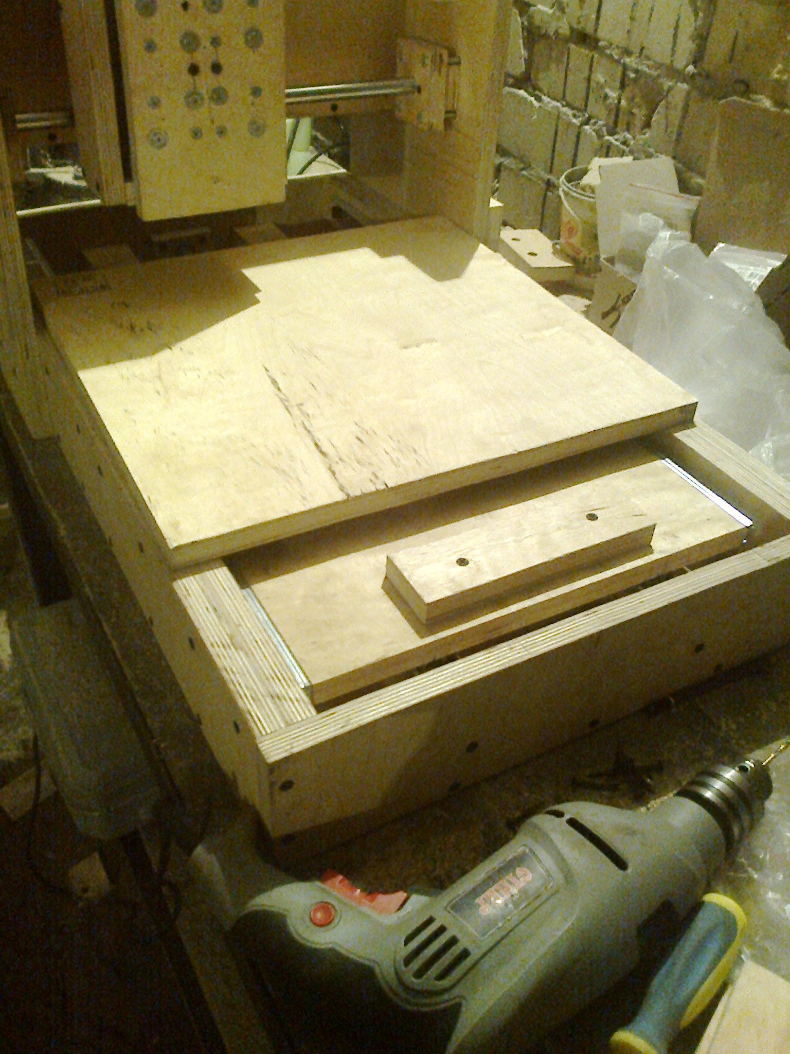 Немного видоизменил стол. Правда не успел доделать бордюрчики по его периметру. К слову будет "тазик" для стружки :hehehe: