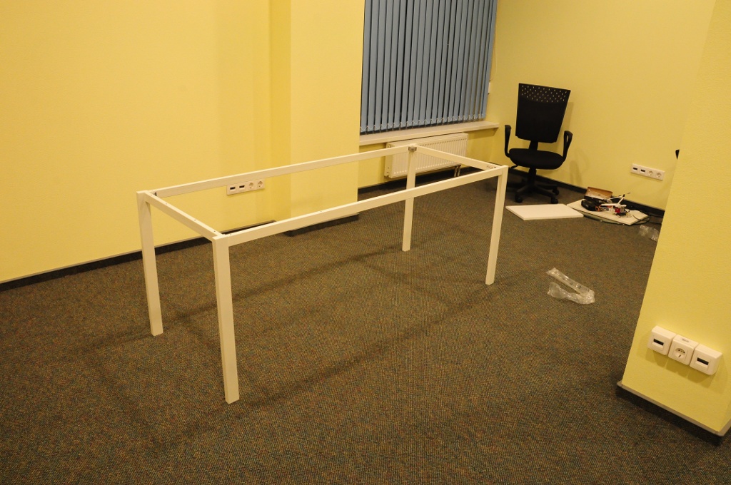 Вот это будет использоваться в качетсве стола/основания - это ножки от икеевского обеденного стола. Их можно купить отдельно от стола, стоят они 1100р. Сделаны из сталюки, правда тонкой. Но на работе таких 4 штуки стоит и под компами не прогибается