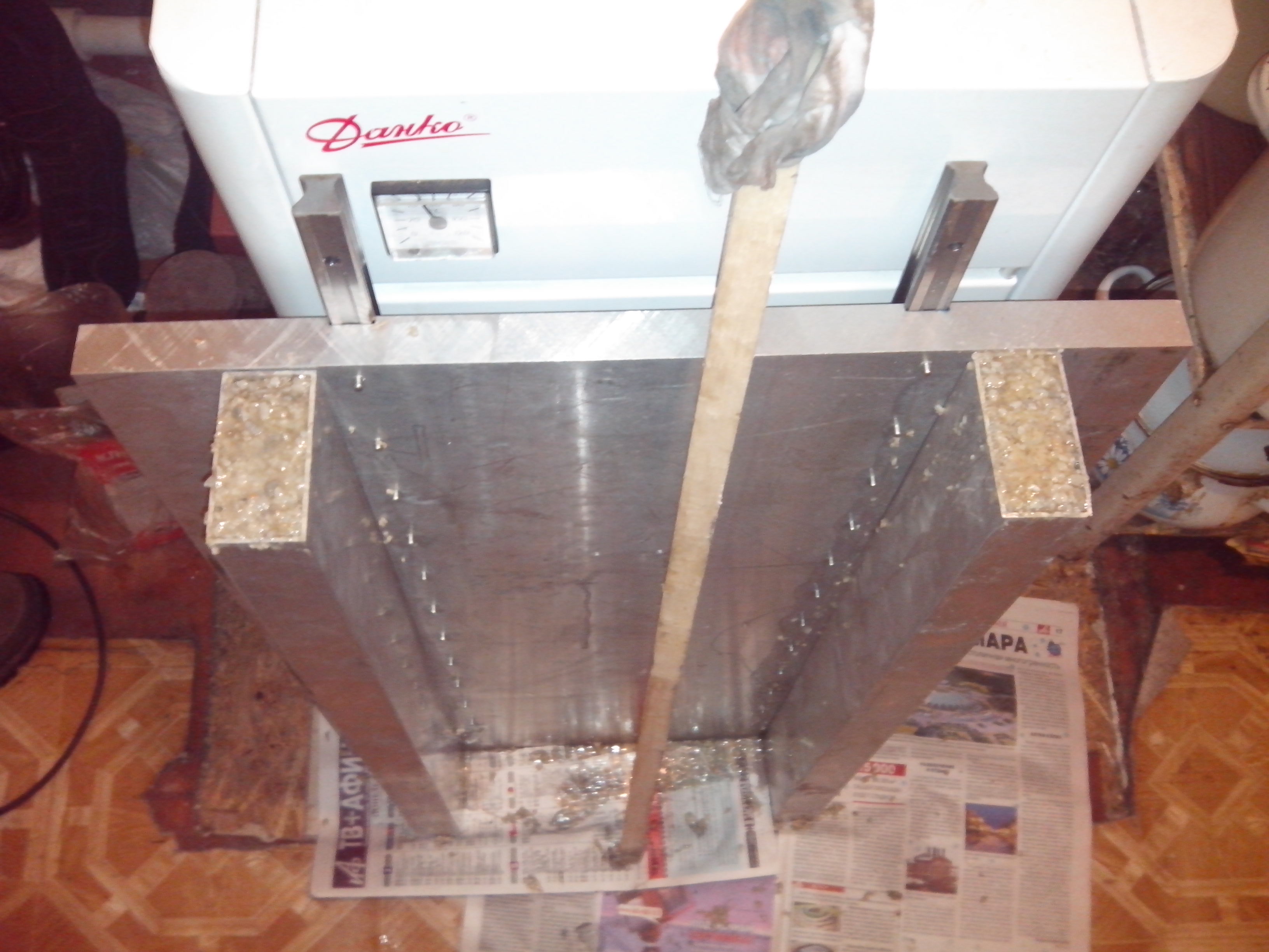 Вот и залил. Вернее затромбовал. Первый опыт с полимерным бетоном