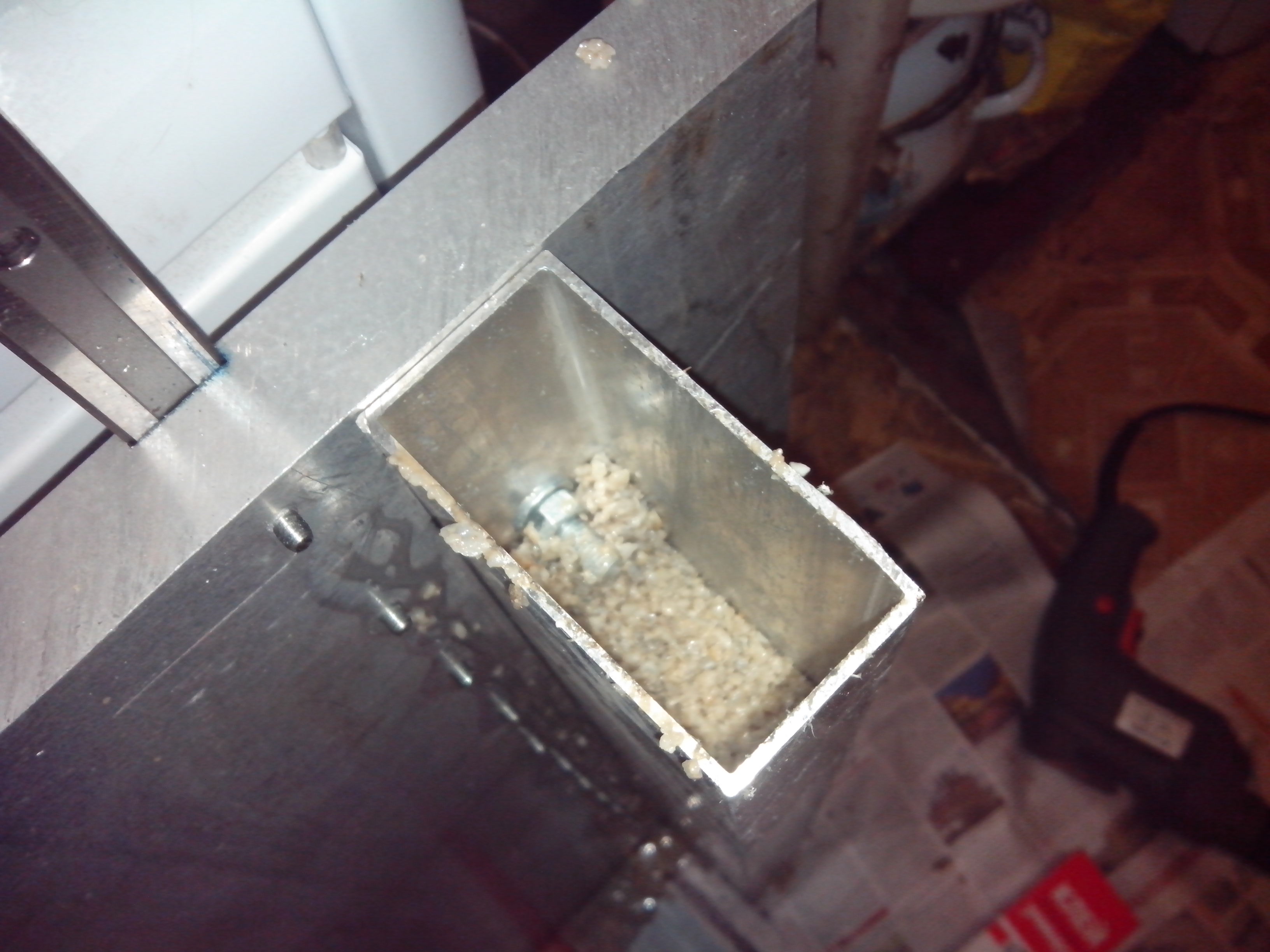 Замешивал так: порцию эпоксидки мешал с половиной отвердителя, далее кидал в нее 500-600г наполнителя, размешивал до состояния каши и доливал остатки отвердителя, опять мешал до равномерной консистенции. Потом непрерывно мешал и добавлял оставшуюся часть наполнителя. В результате получалась эдакая "вязко-сыпучая" масса, которую и закладывал в профиль и тромбовал деревянной рейкой.