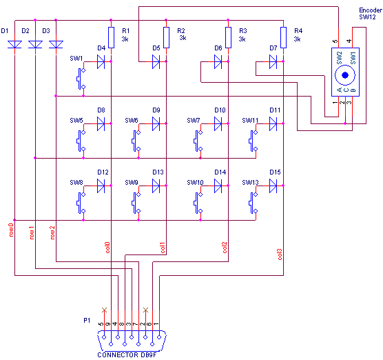 я пробовал включить контакты энкодера вместо двух кнопок матрицы. Но при этом сильно снижается допустимая скорость поворота. Где-то до одного оборота за две секунды, дальше идет "срыв". Правда, у меня под рукой оказался энкодер с 24 импульсами на оборот. А бывают и на 12 и на 10. С ними, может и полегче будет.