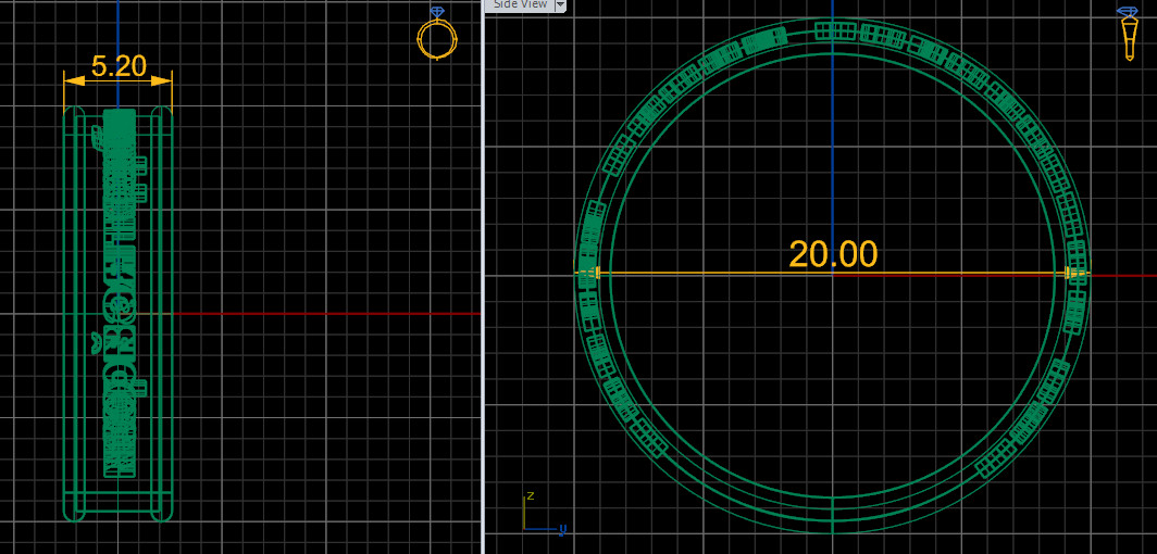 Тогда я немного уменьшу кольцо до 18 мм. Шаг поставлю 0.03 а заглубление 0.3 мм. Гравер 10-ти градусный?