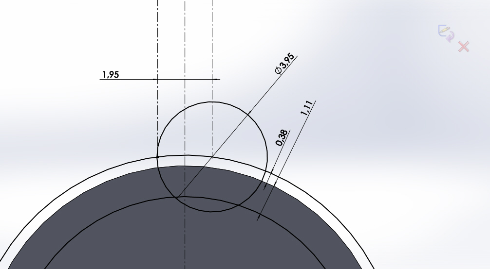 С кривым отверстием S3M (без углубления), фреза 1,5 + доработка 0,8